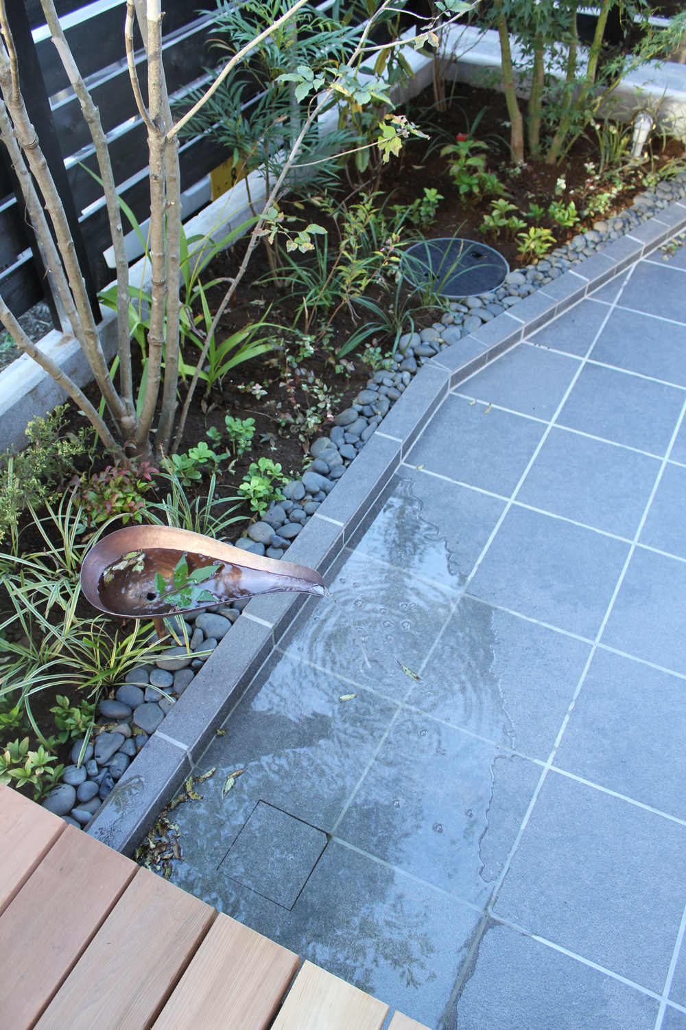 「ミズニワハウス」という名前の由来になっている、敷地の南西角に設けられた水盤。