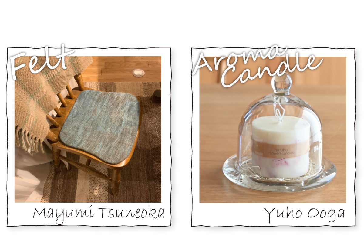 *ワークショップのご予約はお申し込みフォームのメッセージ欄に、フェルト参加かキャンドル参加のどちらか、キャンドル参加の場合は希望のお時間も明記下さいますようお願いします。