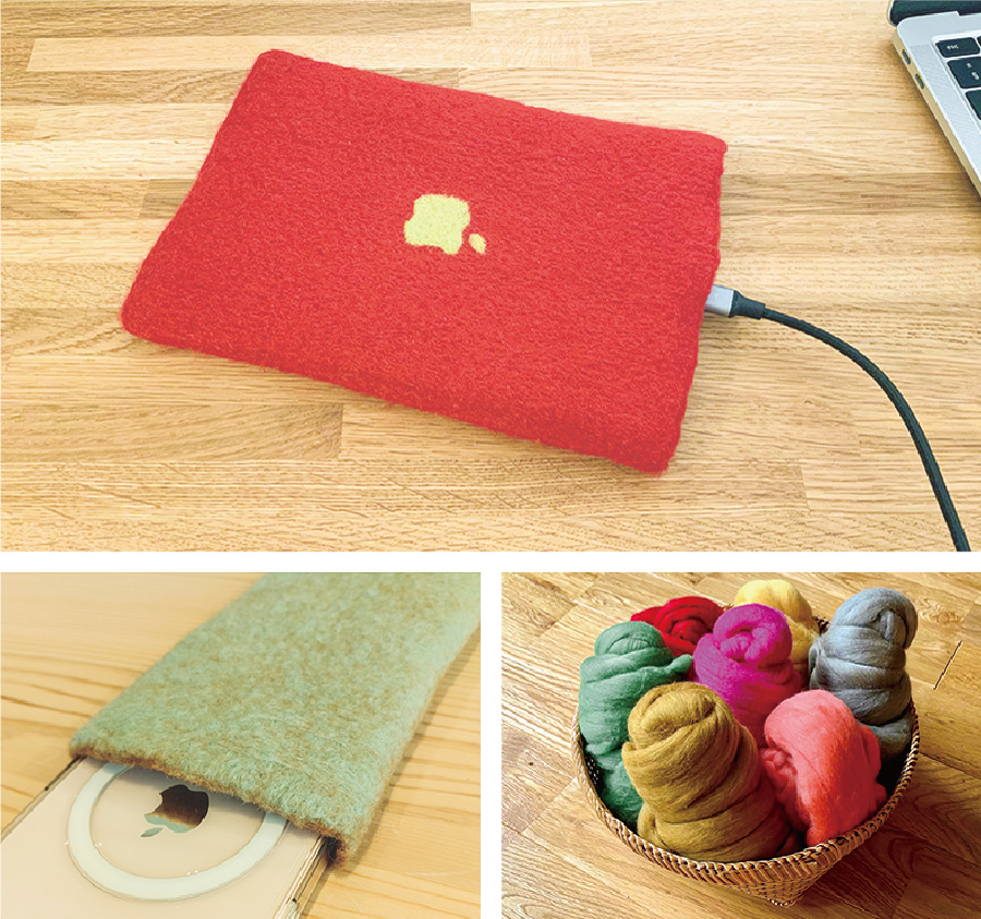 PCケースを原毛から圧縮フェルト化して作るワークショップ。