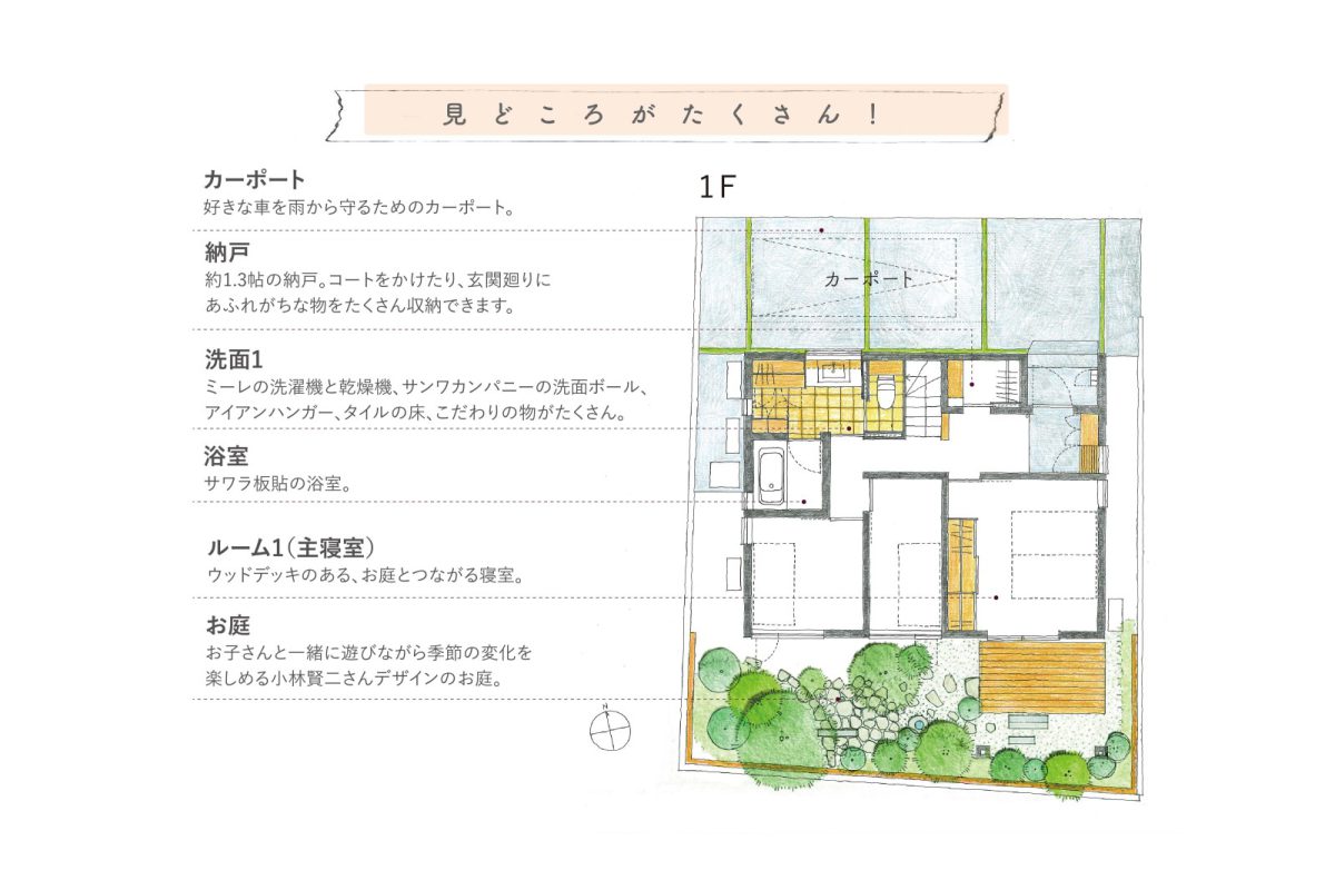 3人家族のK様のお住まい。プラン時点ではあまり意識していませんでしたが、設計が終わった後に、K様の好きなものがたくさん詰まった住まいになったなぁと思いました。吹き抜けとペレットストーブのある広々リビング、こもれる和室、ダイニング脇のワークスペース、木製引き込み窓、大きなバルコニー、少し広めの洗面にミーレの洗濯機と乾燥機、好きな車を雨から守るカーポート、小林賢二さんのお庭などなど。たくさんの好きなものと一緒に、ご家族の楽しい暮らしをつくっていってほしいなと思います。(設計・中村)