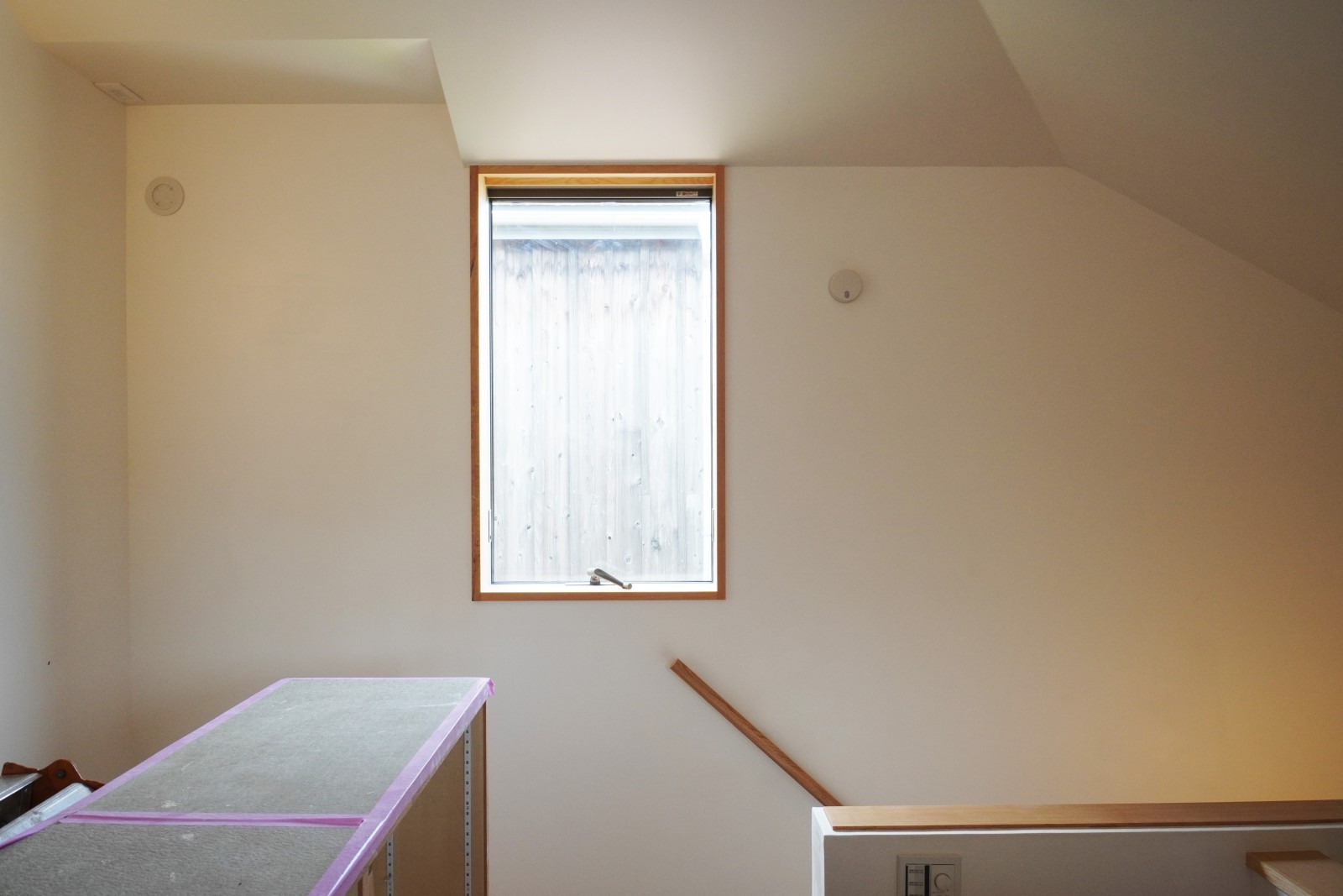 漆喰壁に柔らかく拡散する光を体験できるのは、住まい手さんへ引き渡す前の今だけ。