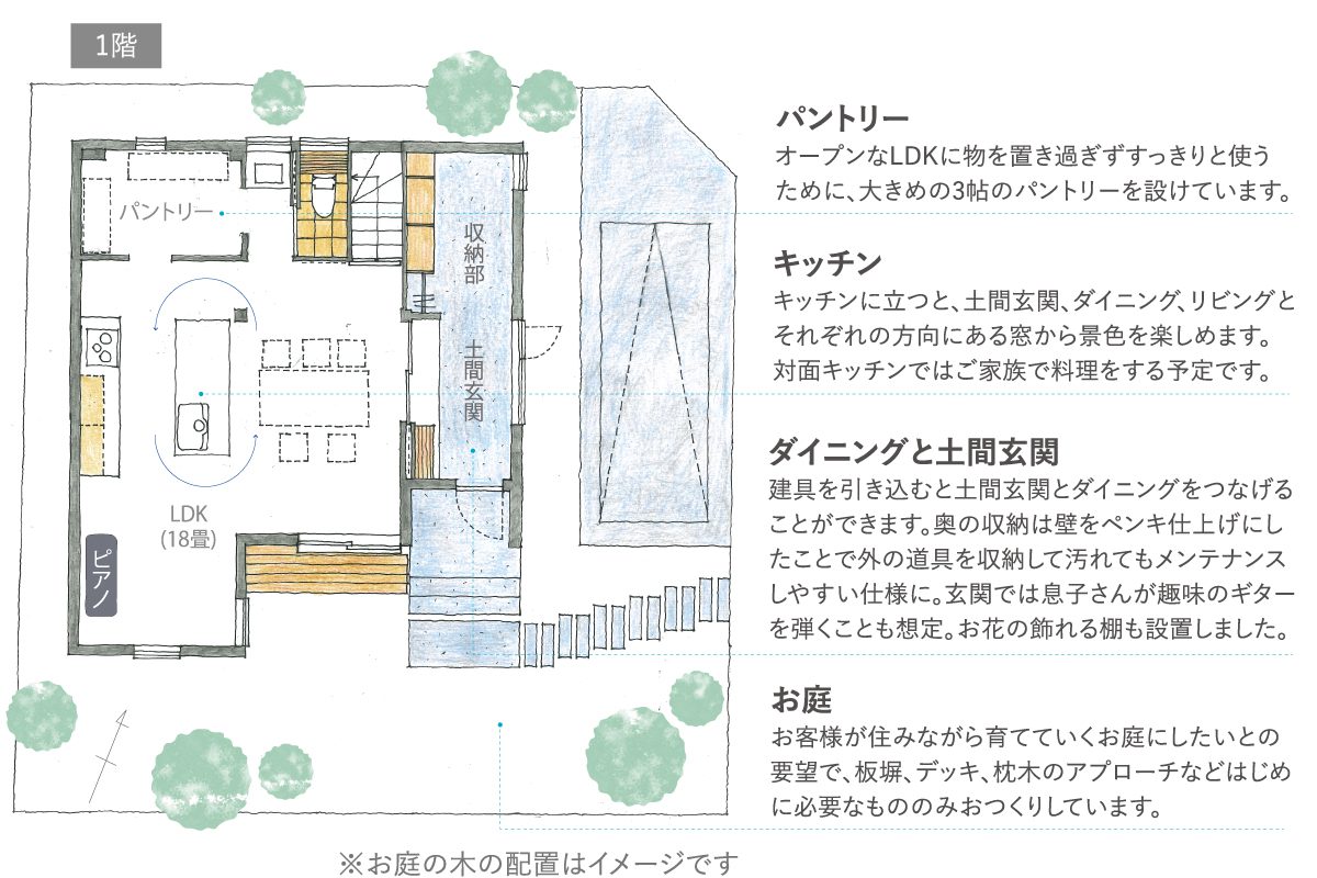 奥様がキッチンに立ち、そんな家族の様子を見守れるような間取りにしました。