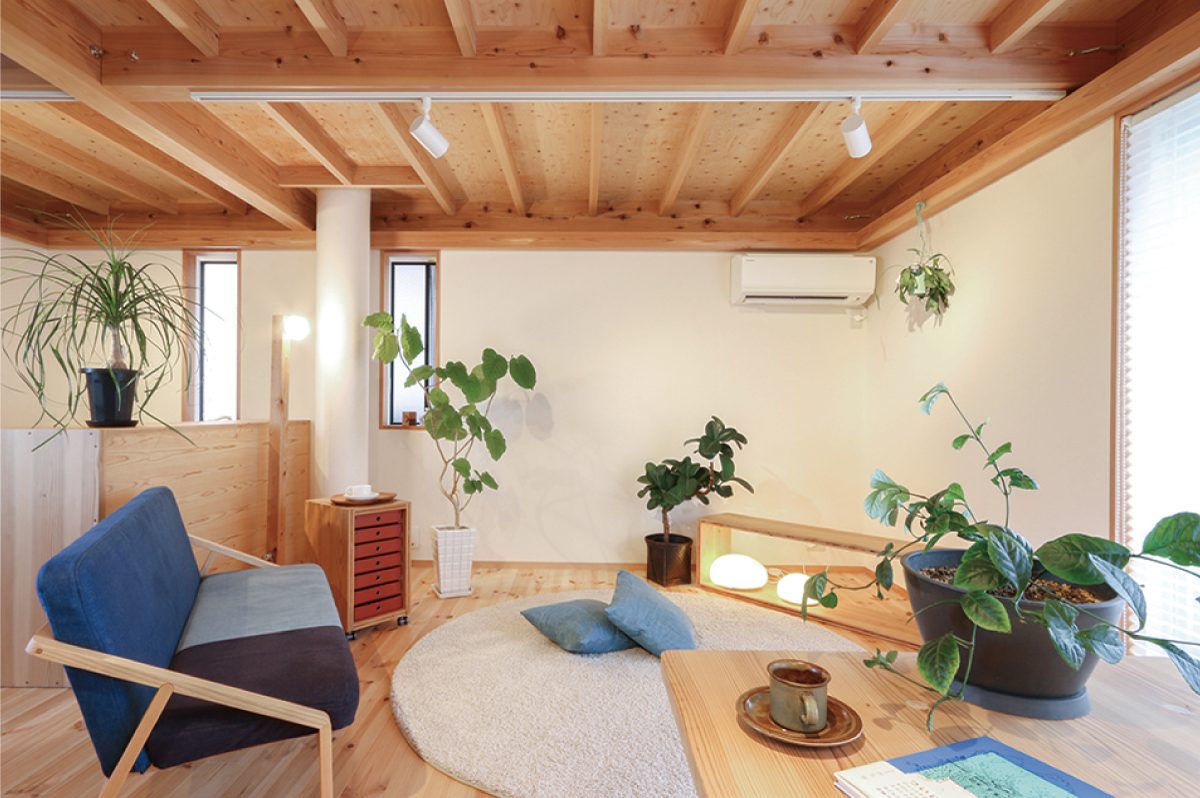 戸建賃貸「秋津町の家(A区画)」では、イベントにあわせて「大工の手」の家具と観葉植物を設えてインテリアの装いを少しチェンジ。家具による間仕切りや緑の彩りで、シンプルな木造ドミノ空間がどんな風に変化するのか、ぜひご覧ください。