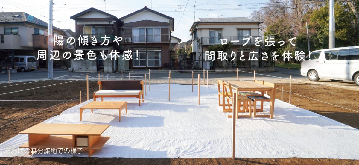 分譲中のB区画C区画では、「土地からだと家のイメージが湧きづらい…実際どれくらいの大きさの家がたつの?」というお客様の声にお答えして、ロープや間仕切り、家具の配置により間取りを再現した、通称「リアルおままごと」を開催予定!