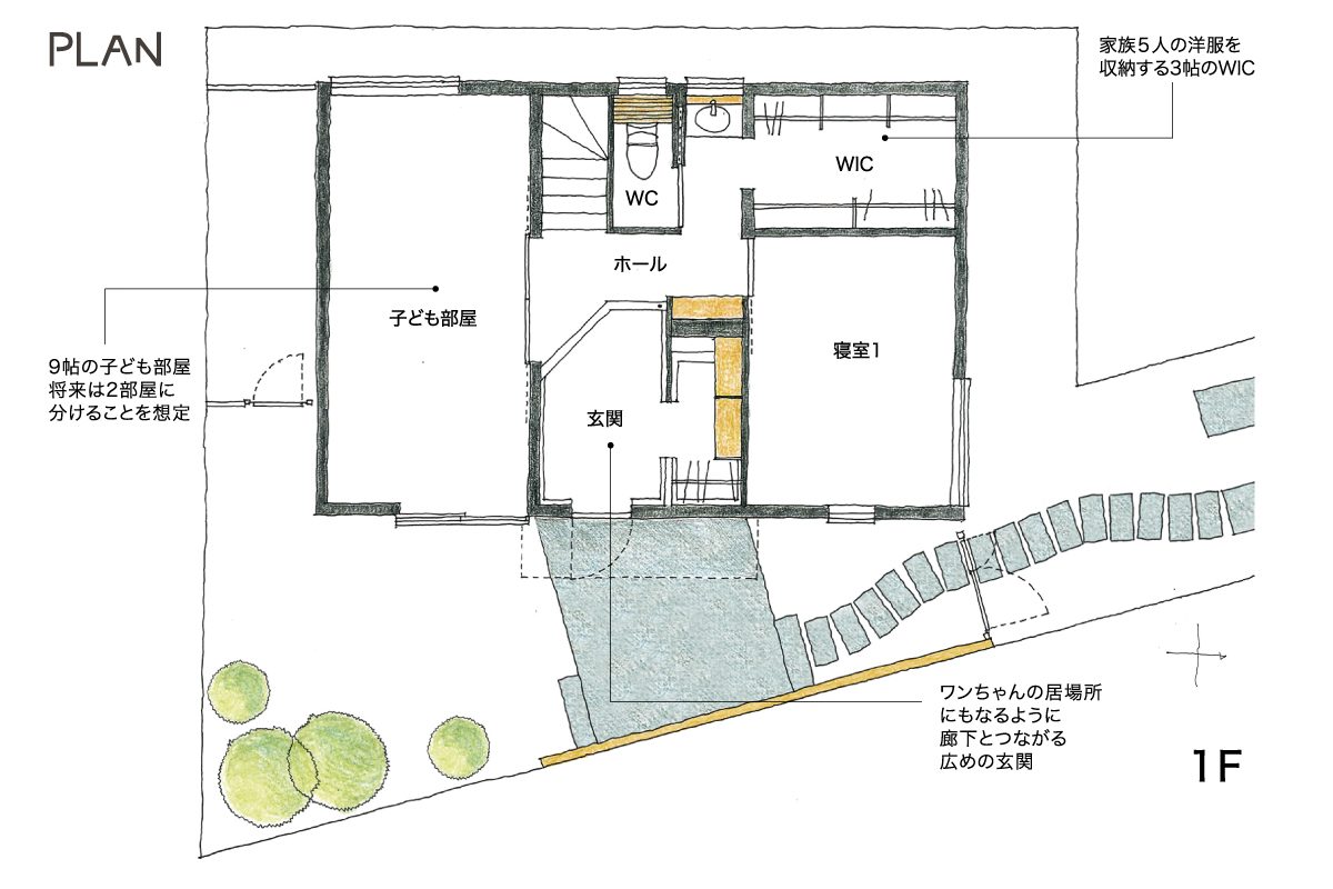5人家族(ご夫婦+お子様3人)とワンちゃんのためのK様のお住まい。