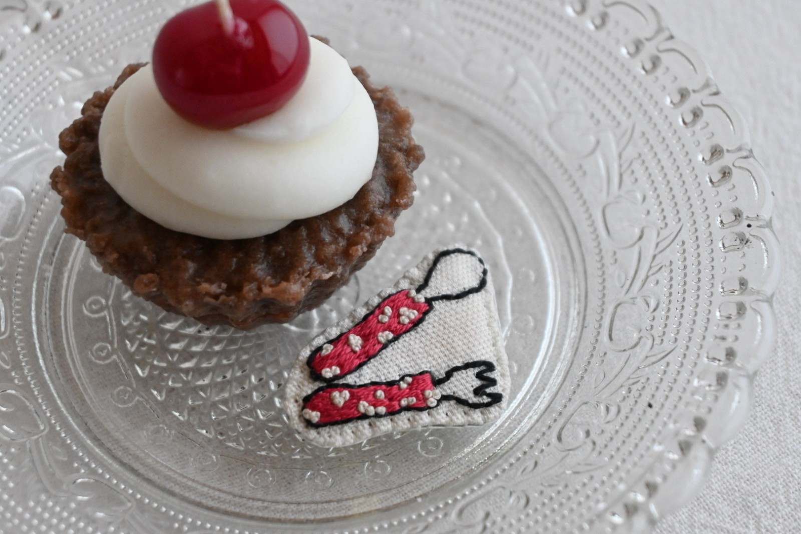 美味しそうなキャンドルと刺繍バッジの組み合わせ