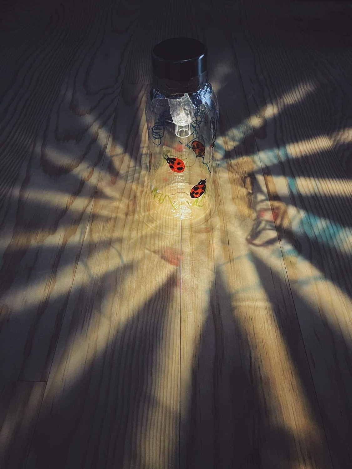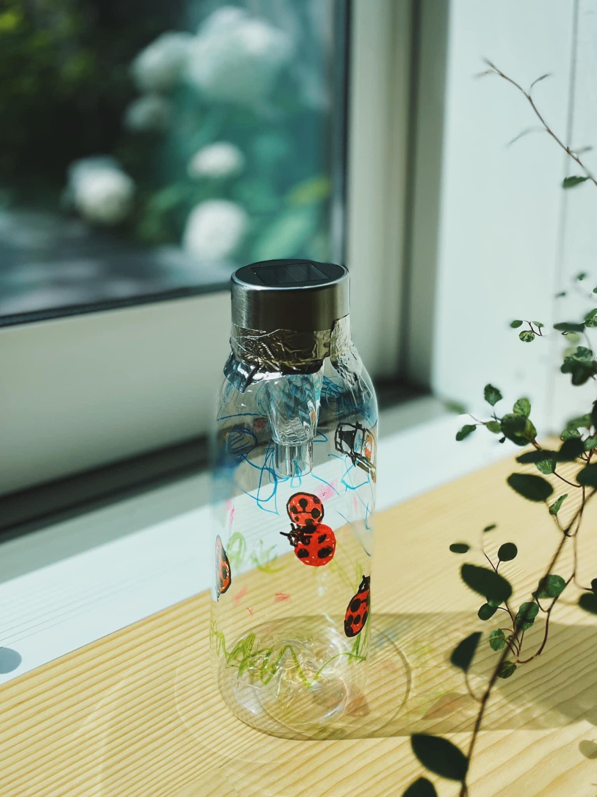 今回はフタの部分に太陽光パネルが搭載された、瓶型のランプです。