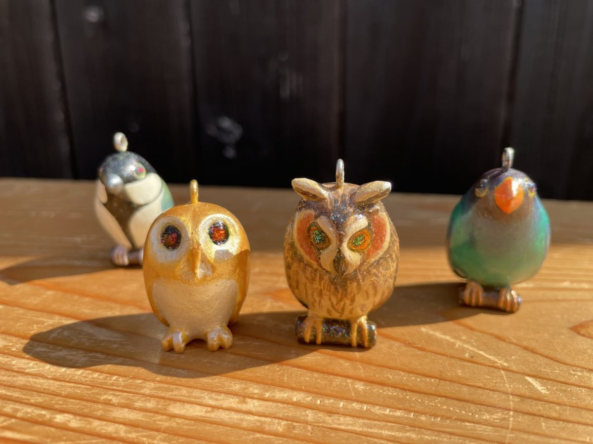 魚や鳥などをモチーフにした木彫り作品