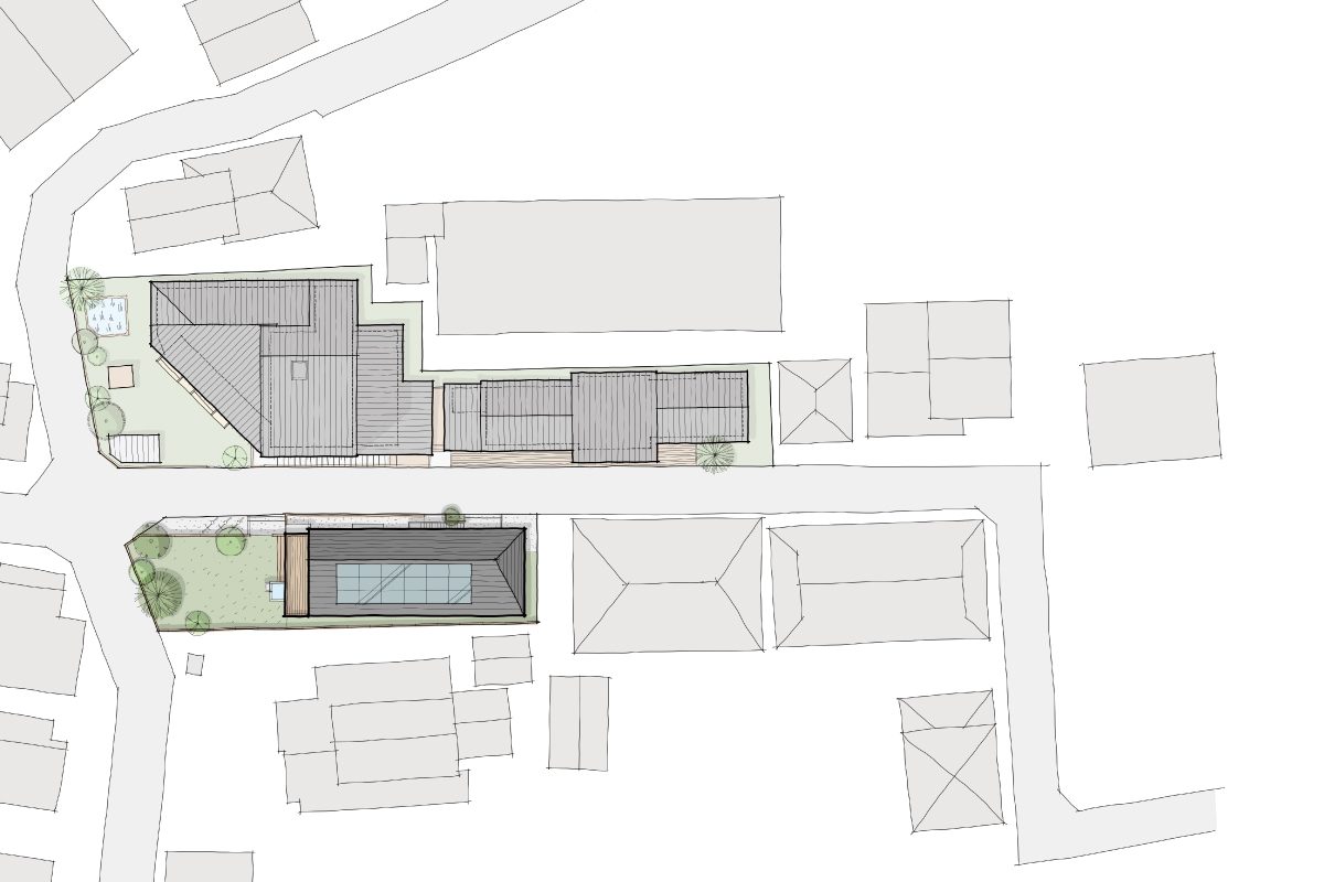 東村山郊外の保育園の園舎が建ち並んだ「辻」に面した区画。
