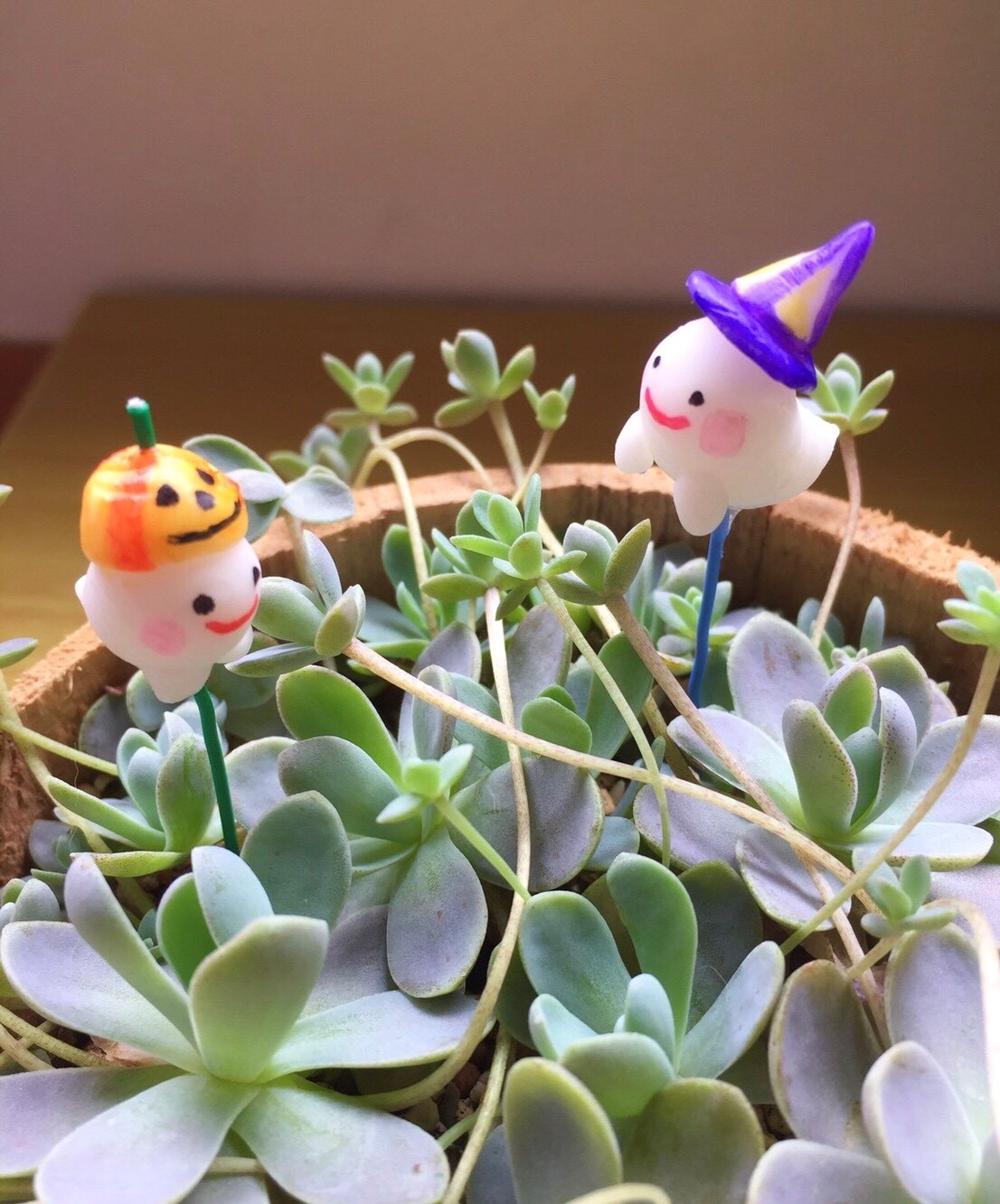 多肉の鉢にちょこっと挿す可愛らしいハロウィンピック。楽しく色付けして飾ってみませんか?