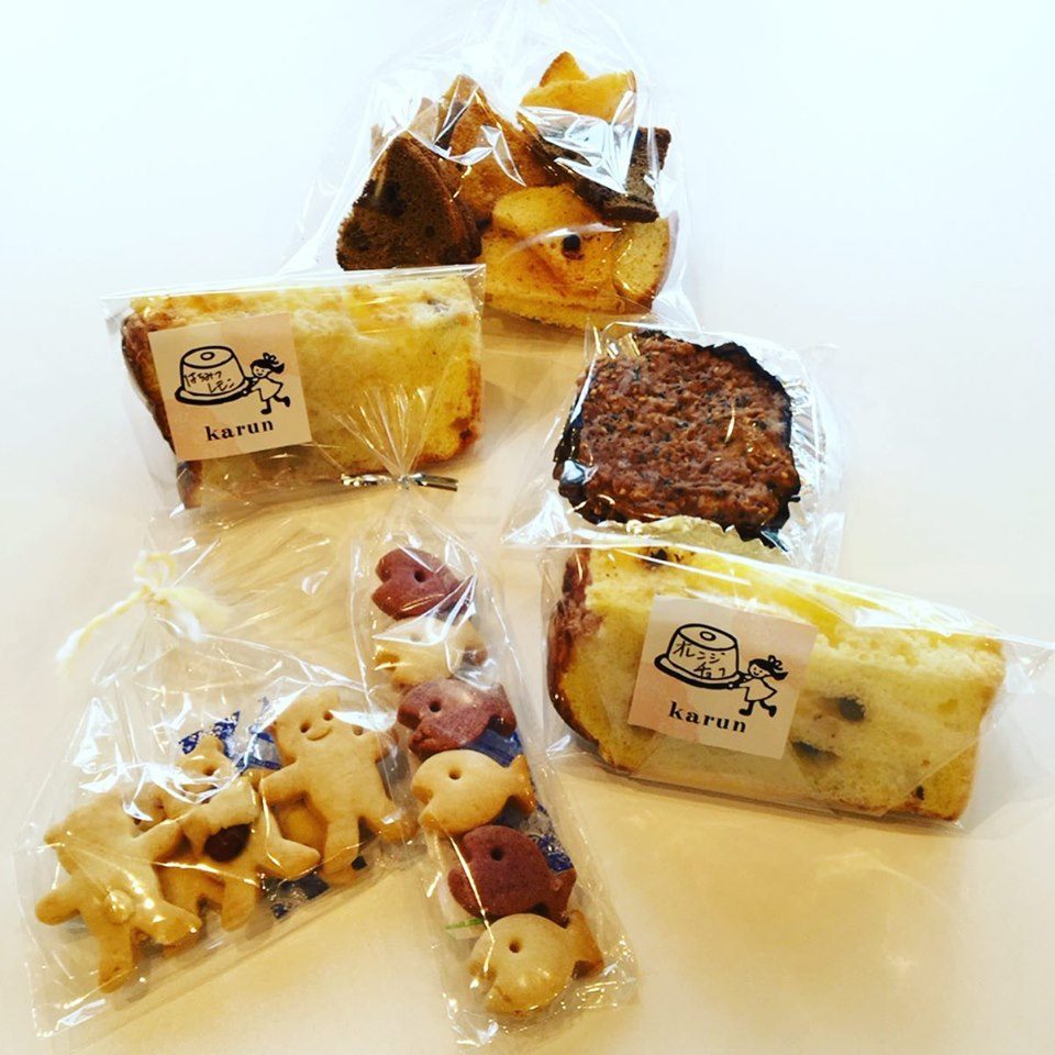 卵・バター・白砂糖不使用の優しいお菓子屋さん。今回はシフォンケーキをメインにクッキーなど並びます。