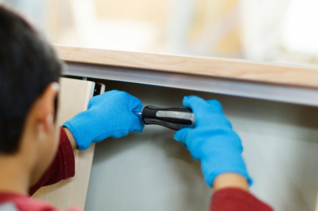 ドライバーを使って作業吊り戸専用のレールや金具を留めて、戸が開くようにします。