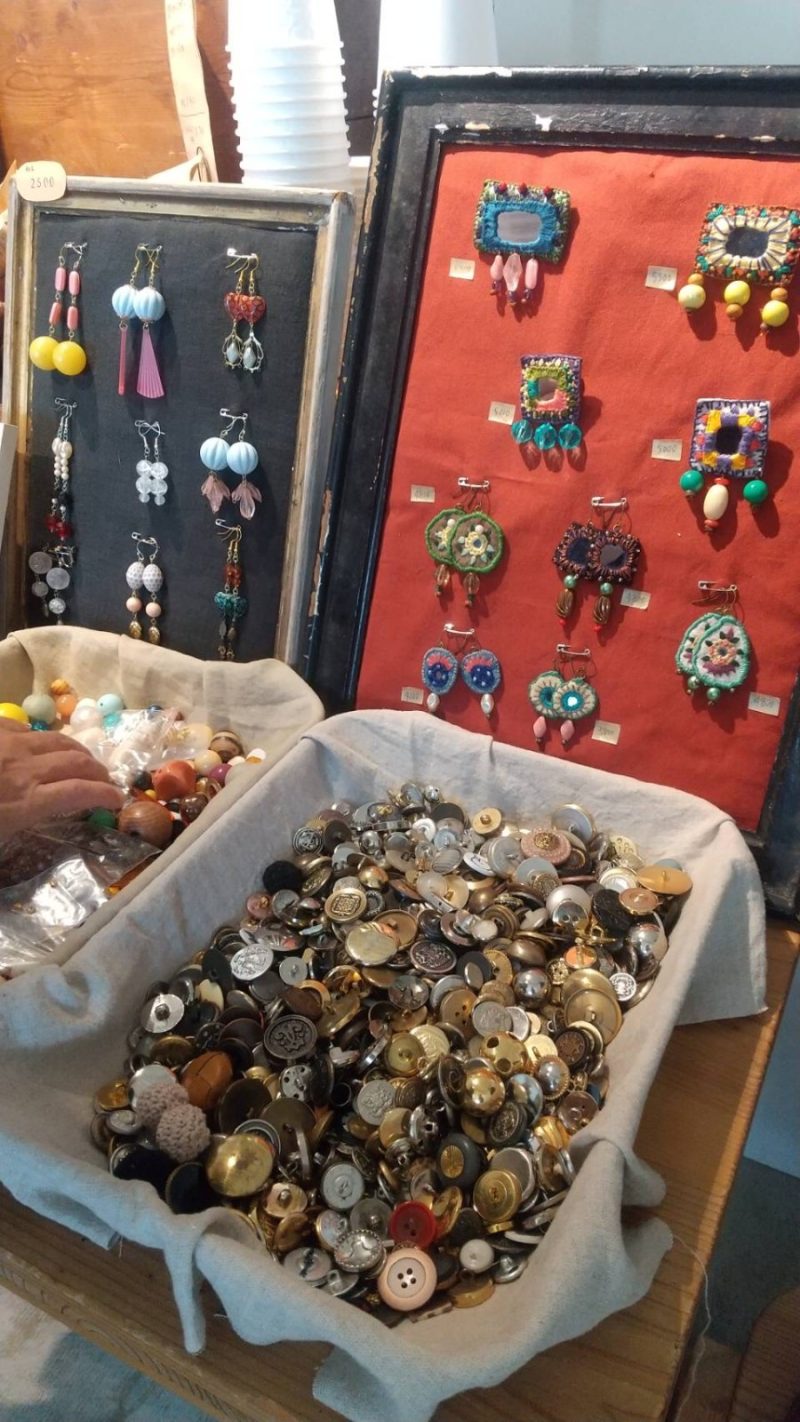使い古され 味のある メタルボタン。飴玉のような 厚みのある練りボタン。宝石のようなレトロなビーズたち。