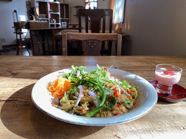 季節のお惣菜が詰まったスパイスカレー弁当をお持ちします