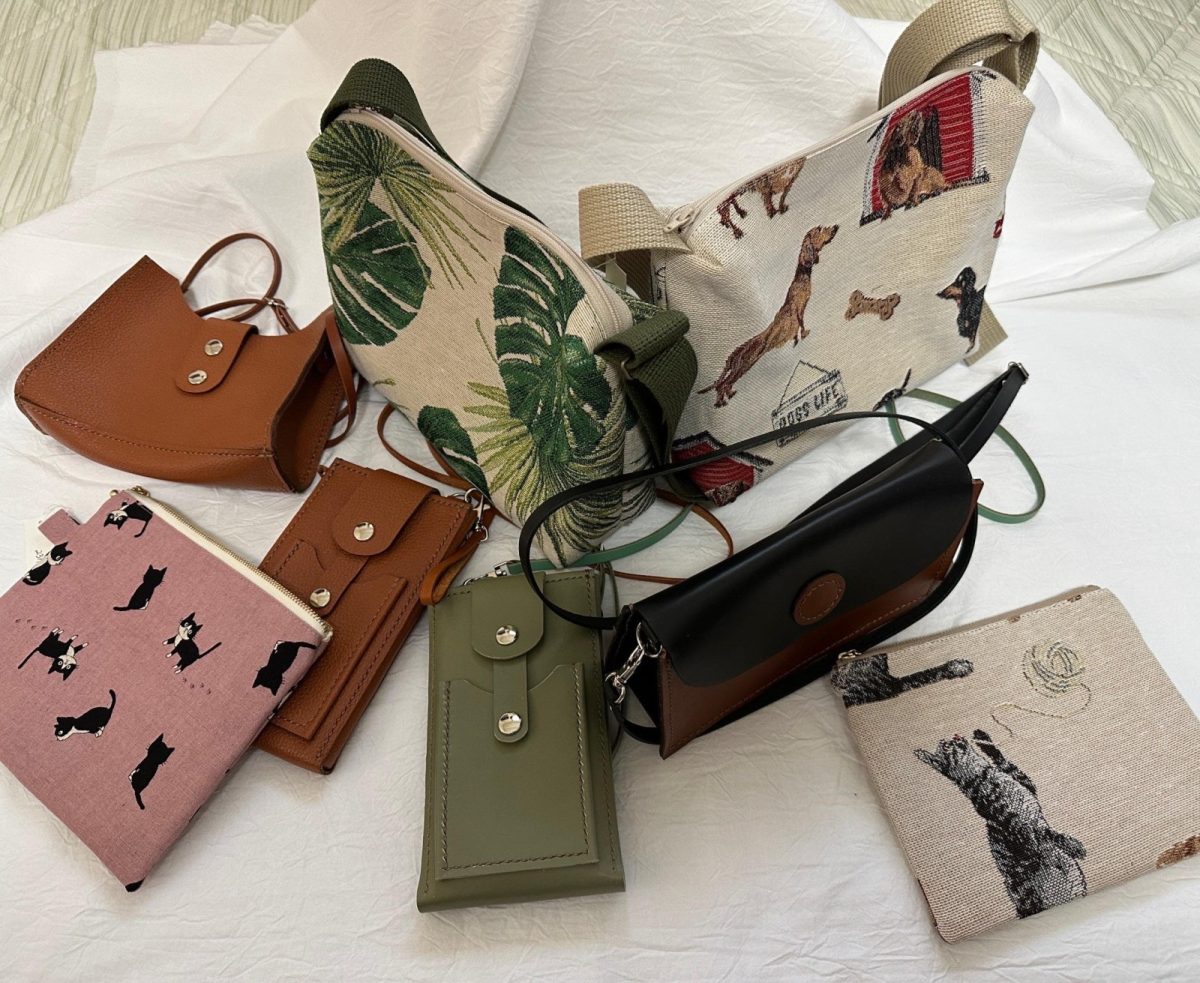 革・布地を使ったポーチなど手作りの作品