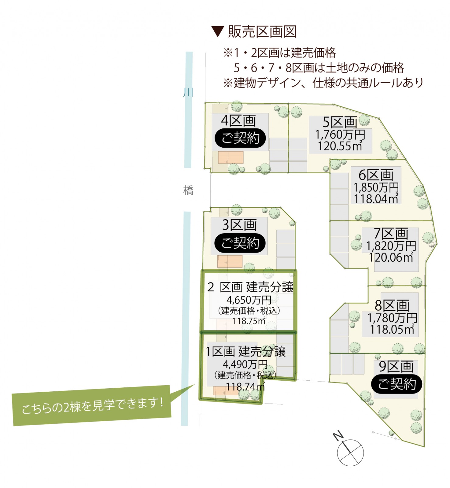 ●販売区画数:建売分譲2区画(1・2区画)、建築条件付売地4区画(5・6・7・8区画)