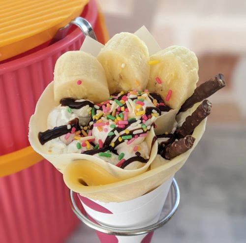 お子さまに大人気のカラフルチョコバナナ、フローズンの果物や白玉がのったもの、様々ご用意してお待ちしております!