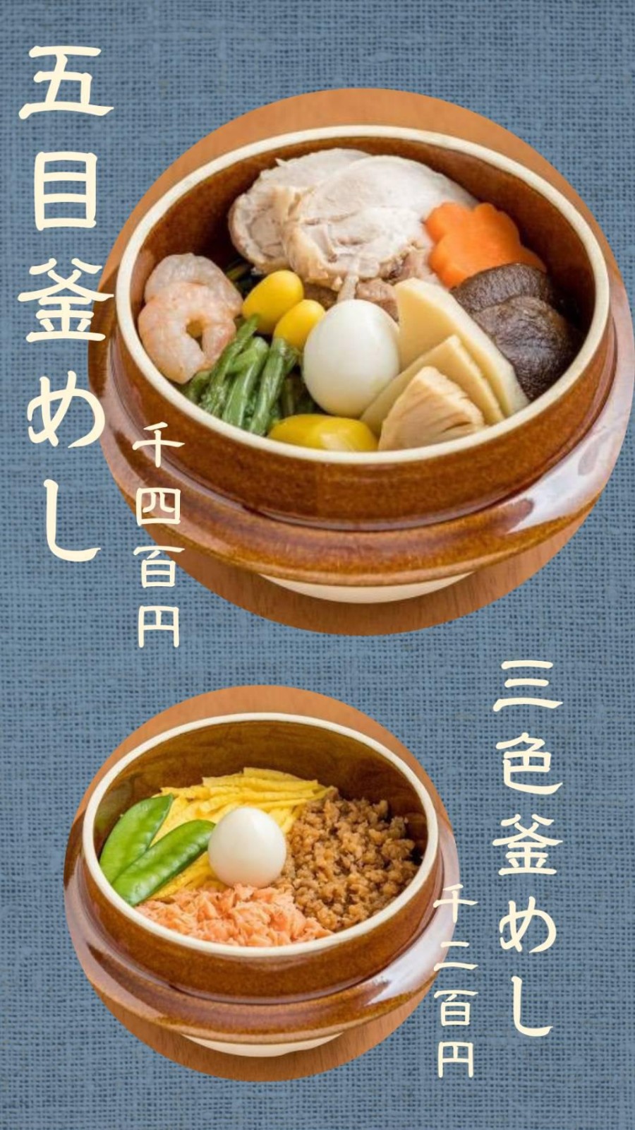 ●直火炊きの釜めし全15種!