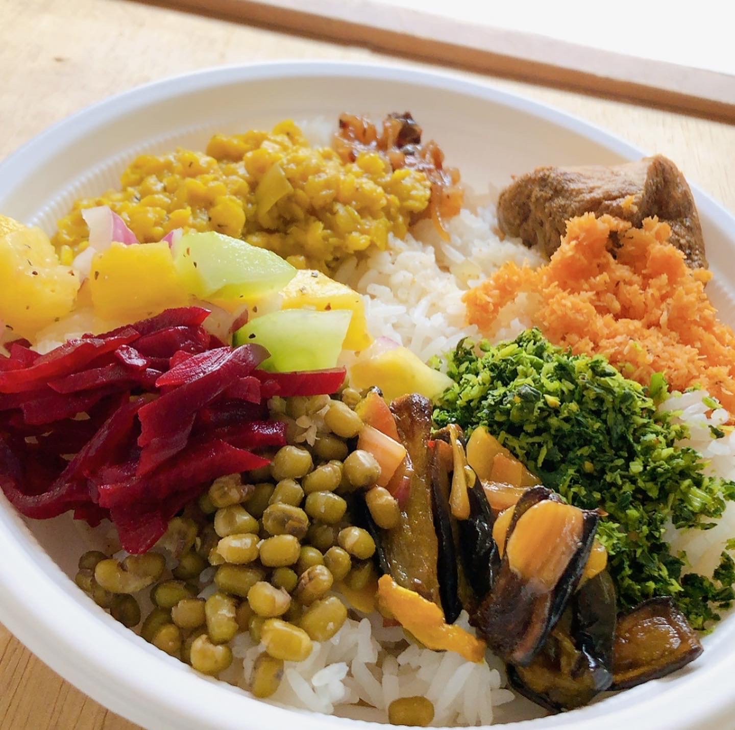 家族が安心して食べられるような素材(無農薬自家菜園で育てた野菜やできる限り自然な食材、化学調味料不使用など)を使い、作り置きはせず、その日の朝に丁寧に調理されたスパイス料理はどれも季節に応じた優しいパワーに溢れるものばかり。イベント当日はジャスミンライスの上にカレーや付け合わせが9種類のったプレートをご用意くださいます。