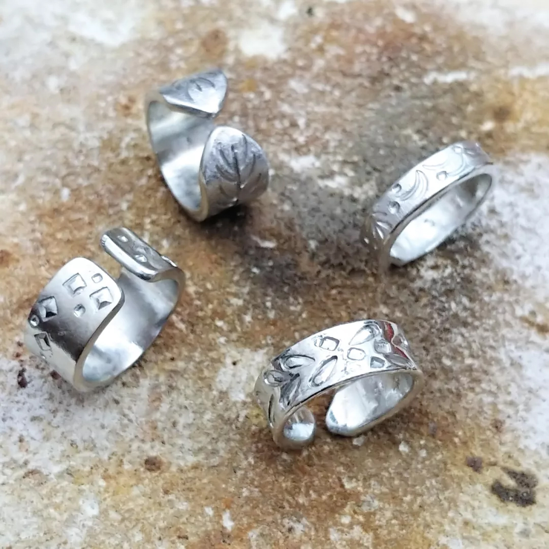 金槌から一つひとつ丁寧に手作りした道具で、真鍮やシルバーを叩いて延ばして作っています。ちょっと不思議なマスコット「みんなの大根」も一緒に販売します。