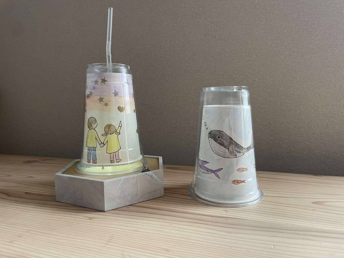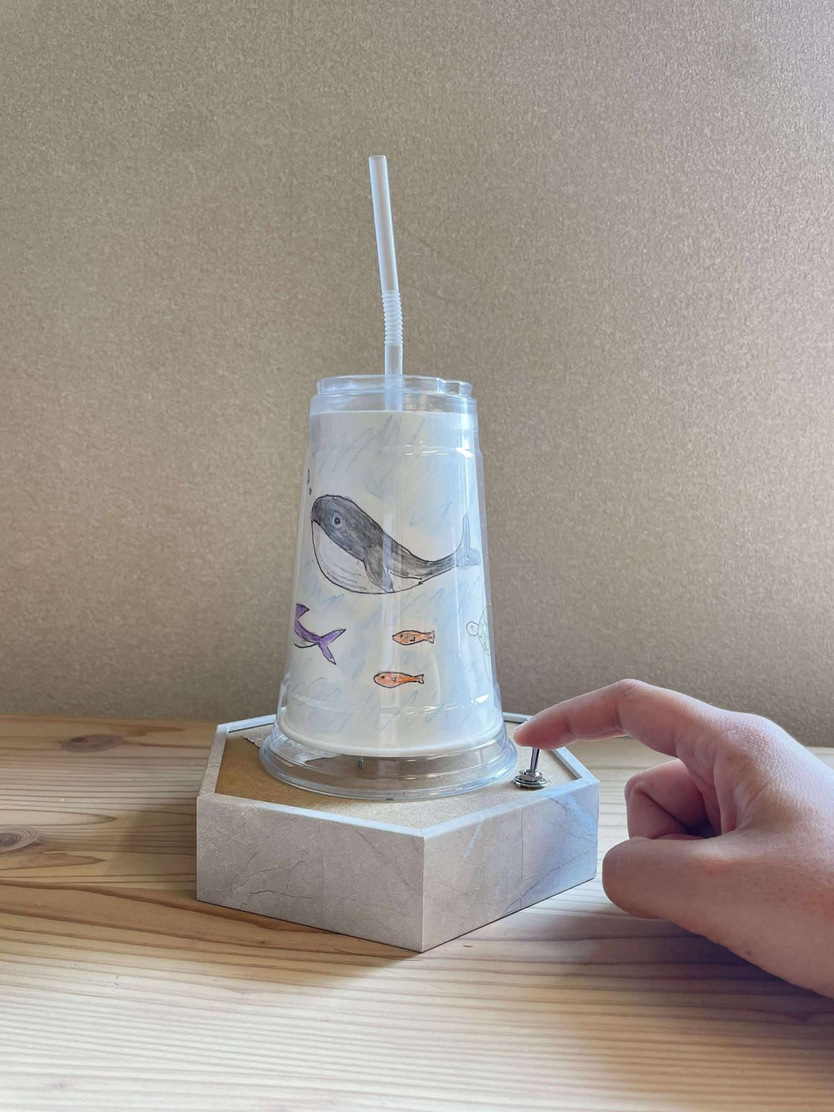 今年は透明カップを使ってランタン風のランプ作り。明かりと一緒にくるくる回ります!