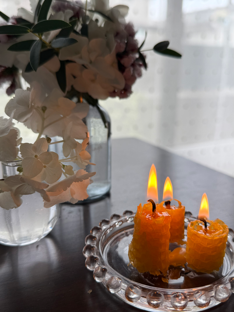ミツロウをくるくる巻いて、お花で飾るナチュラルキャンドルづくり
