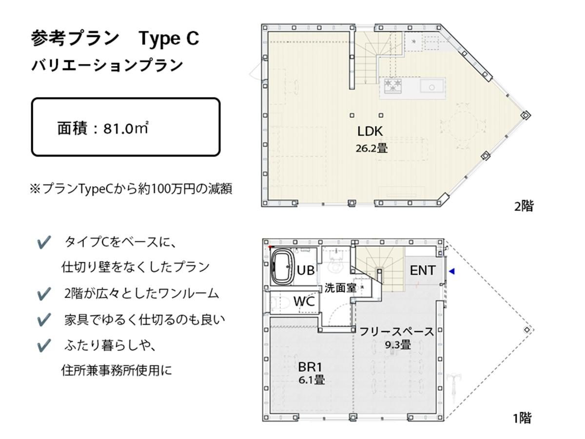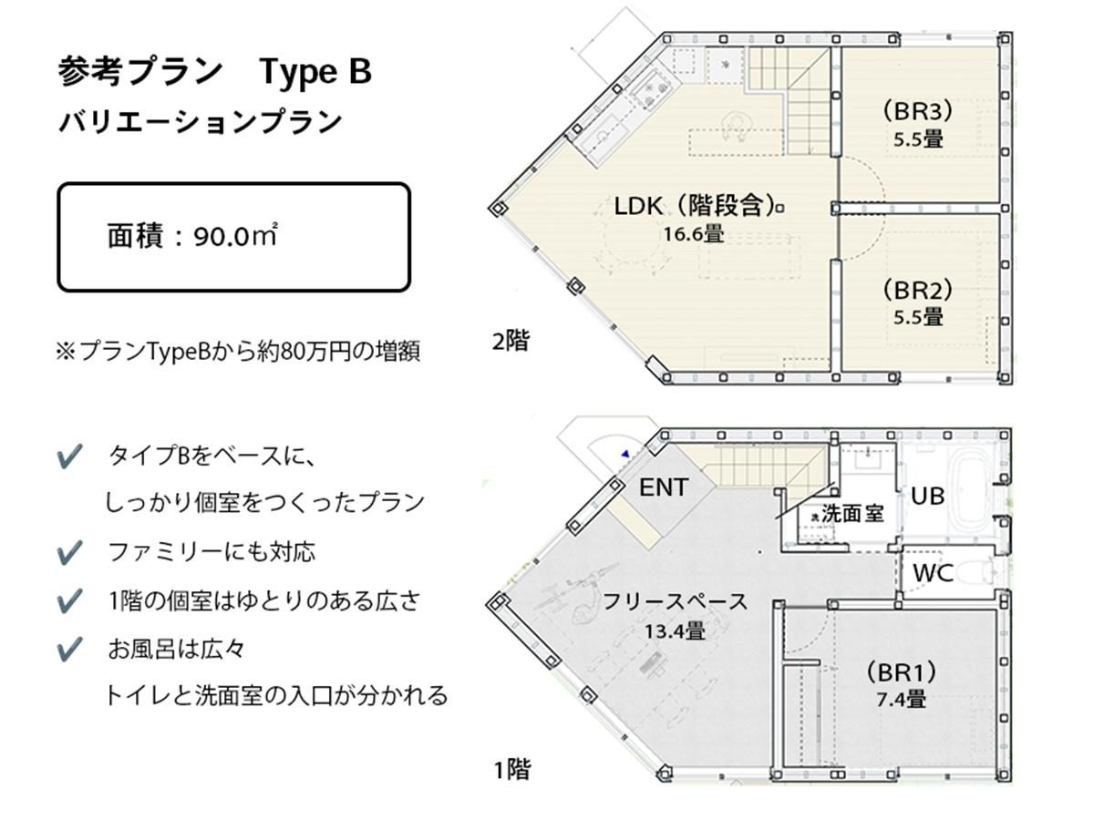 なお基本プランは、どの区画でも両タイプが建築可能です。もちろん内装デザインや仕様は自由に変更も可能。表記の価格は基本プランで建てた場合の参考価格ですので、プランに変更が加わった場合価格が変動します。