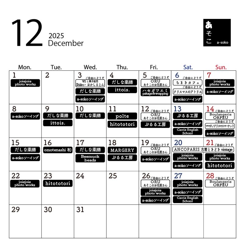 (a_soko.kiyose)にてイベントカレンダーを公開しております