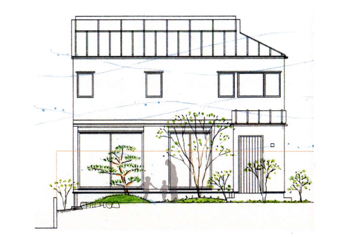 西側が開けた立地を活かし、南側には庭を設けることで、この土地ならではの心地よい風景を生み出しています。