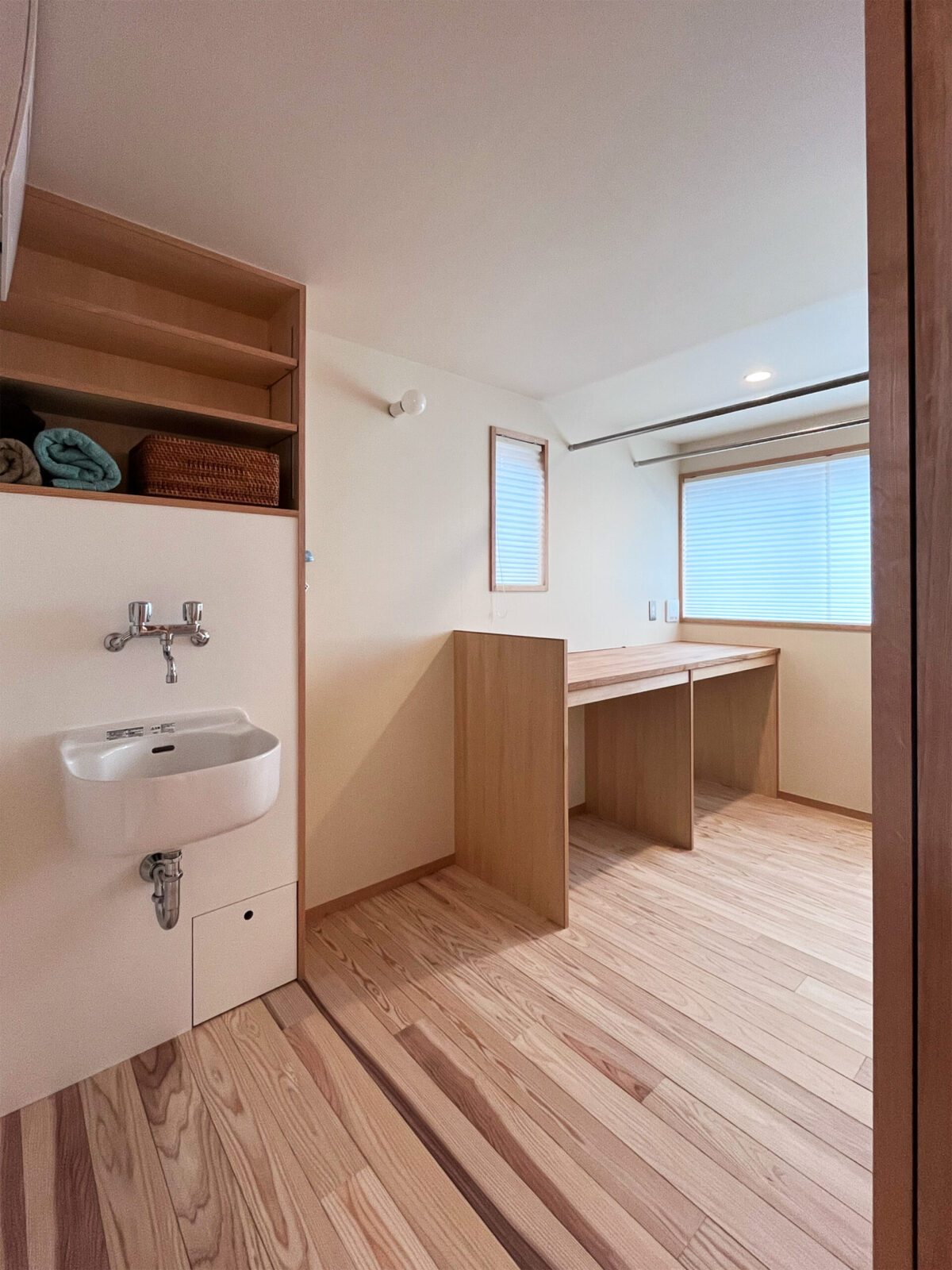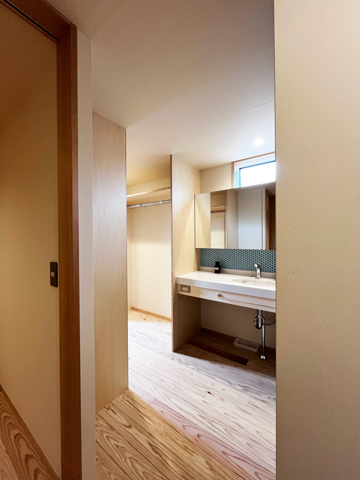 室、浴室、洗濯室、ウォークインクローゼットをまとめ、特に洗濯に関する家事がワンフロアで完結するよう計画しました。