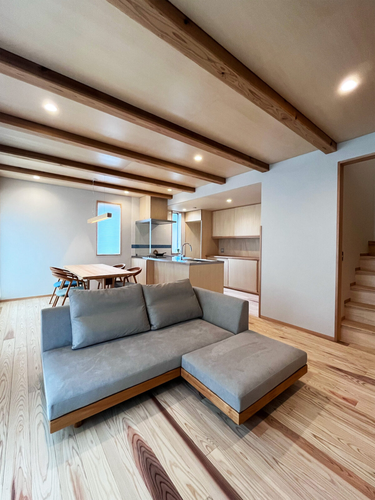 ダイニングやソファといった置き家具もコーディネートをご依頼いただき、相羽建設が提案する「家+庭+家具」でつくる住まいをご覧いただけます。
