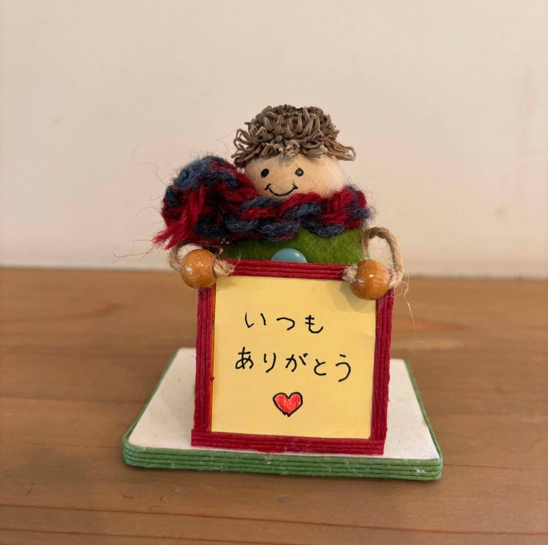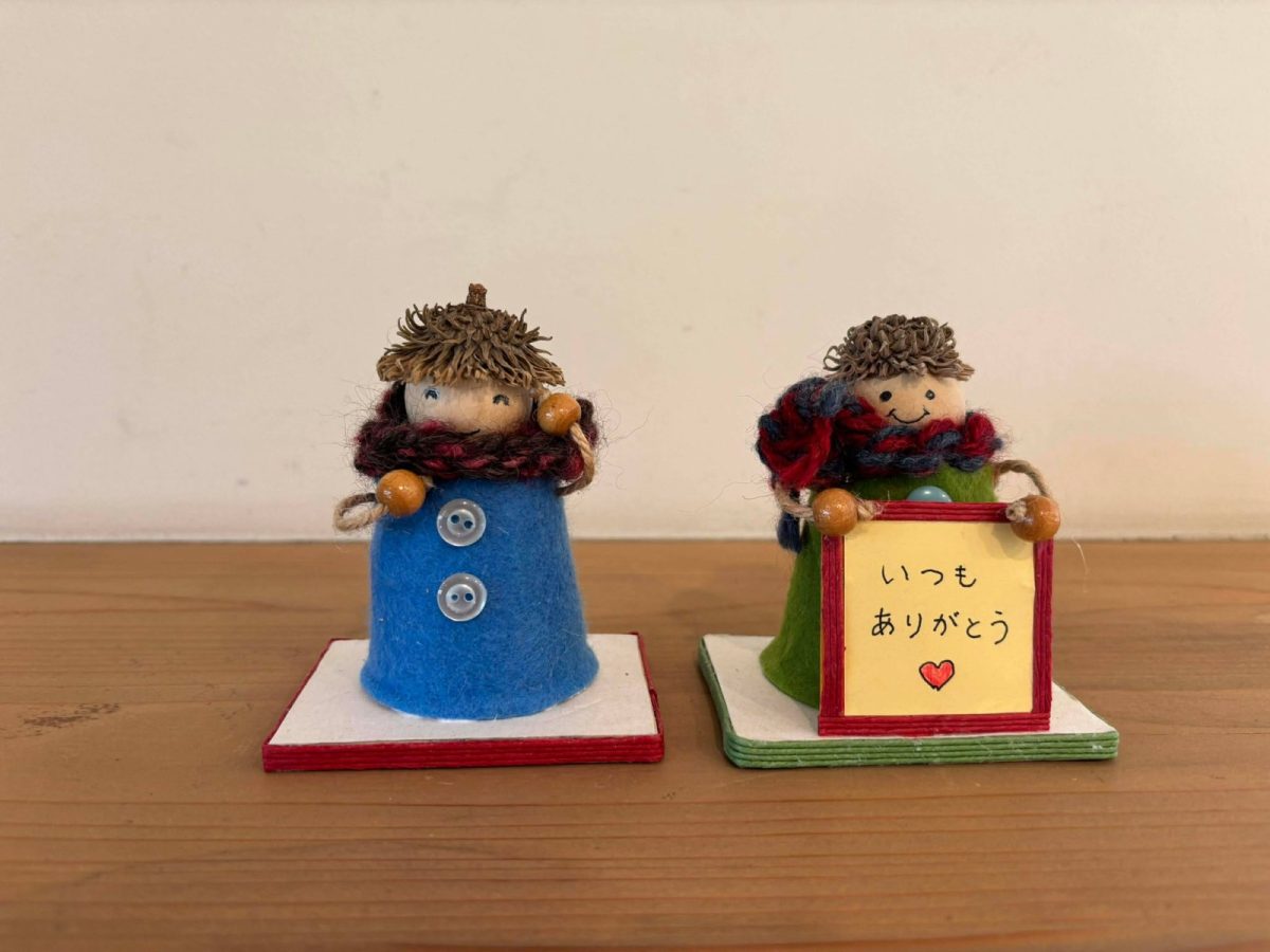手のひらにのるかわいい小さな人形にメッセージカードを持たせて… 目にするたびに心がほっこりするような簡単で楽しい人形作りです。 人形の表情は自分で描き込み、洋服やマフラーはお好きな色を選んでお作り下さい。