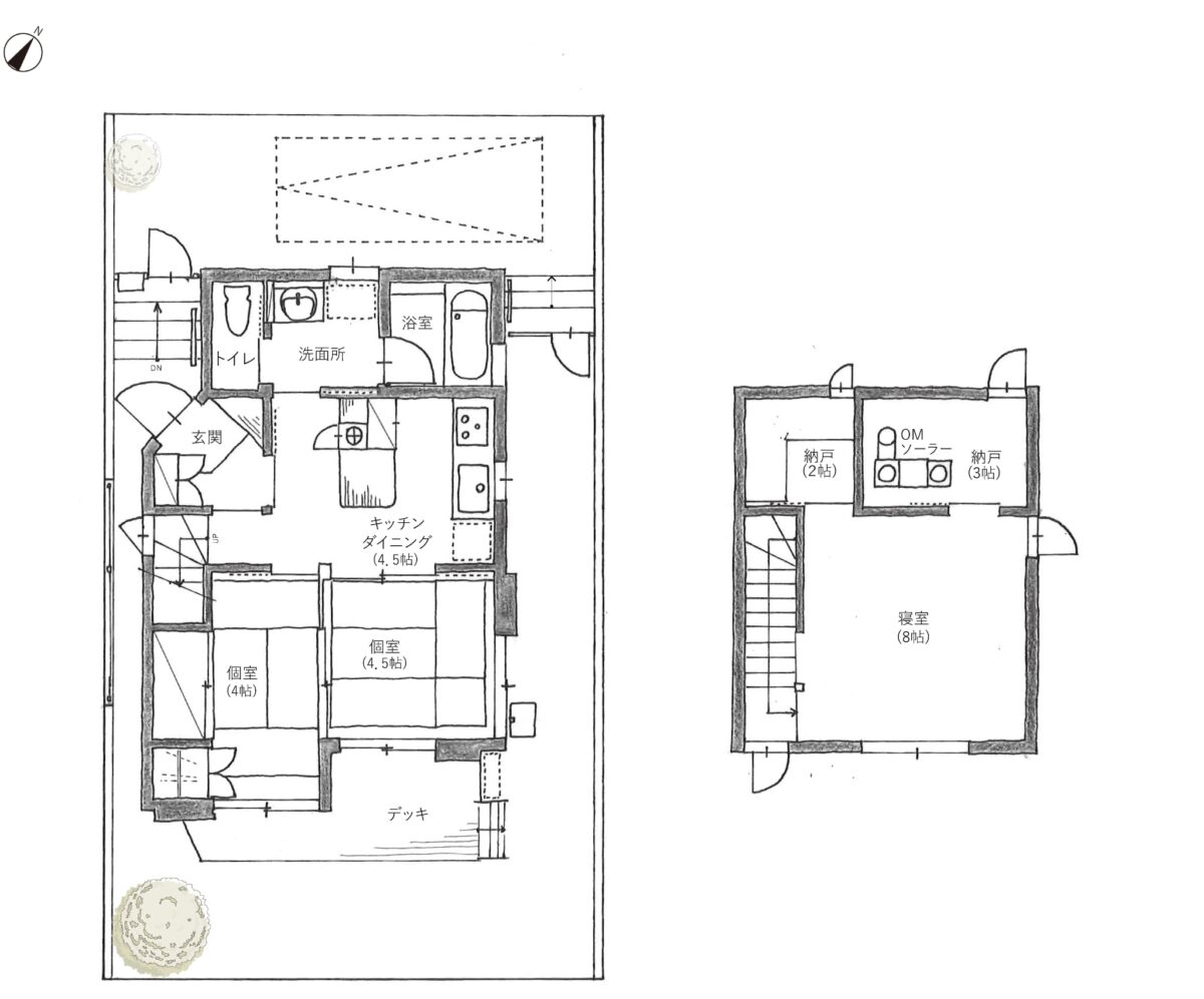 南側の庭に小さな小屋を増築することも可能。