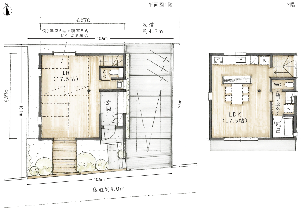 - □接道状況/南側約4.0mアスファルト舗装(私道)、北側約4.2mアスファルト舗装(私道)