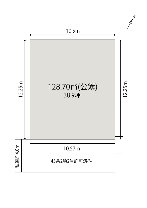 接道状況 / 南側4m私道( 43条2項2号許可申請取得済み・持分あり )