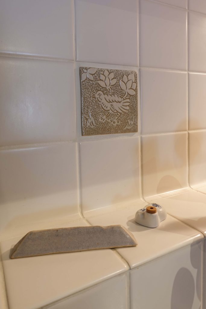 入角がRの白タイルは掃除もラクラク