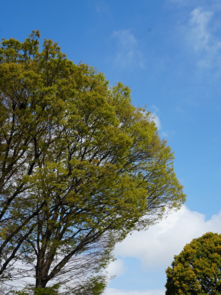 ソメイヨシノ満開の季節は、落葉樹も常緑樹も新緑が一斉に吹き出る季節、