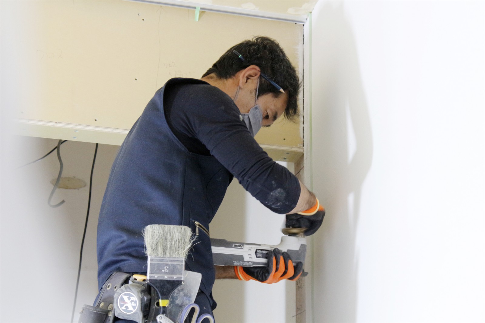 1階、2階、3階、外壁など、仕事場を残しつつ順番に工事していくことで、施工と業務の両立を可能にしています。