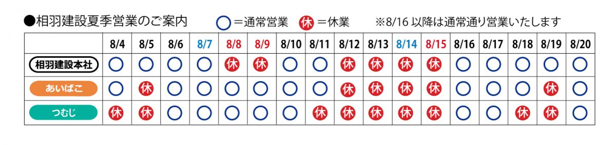 お問い合わせやメール等のご返信は、8/16(月)から随時ご対応いたします。