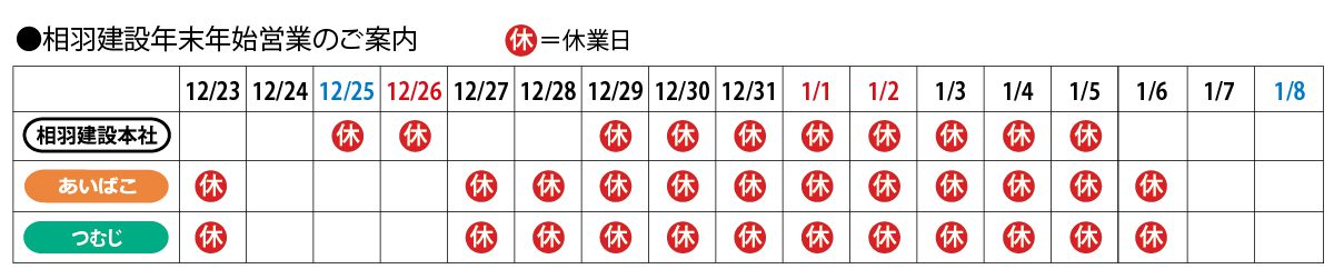 年末年始休業のご案内と年の瀬のご挨拶