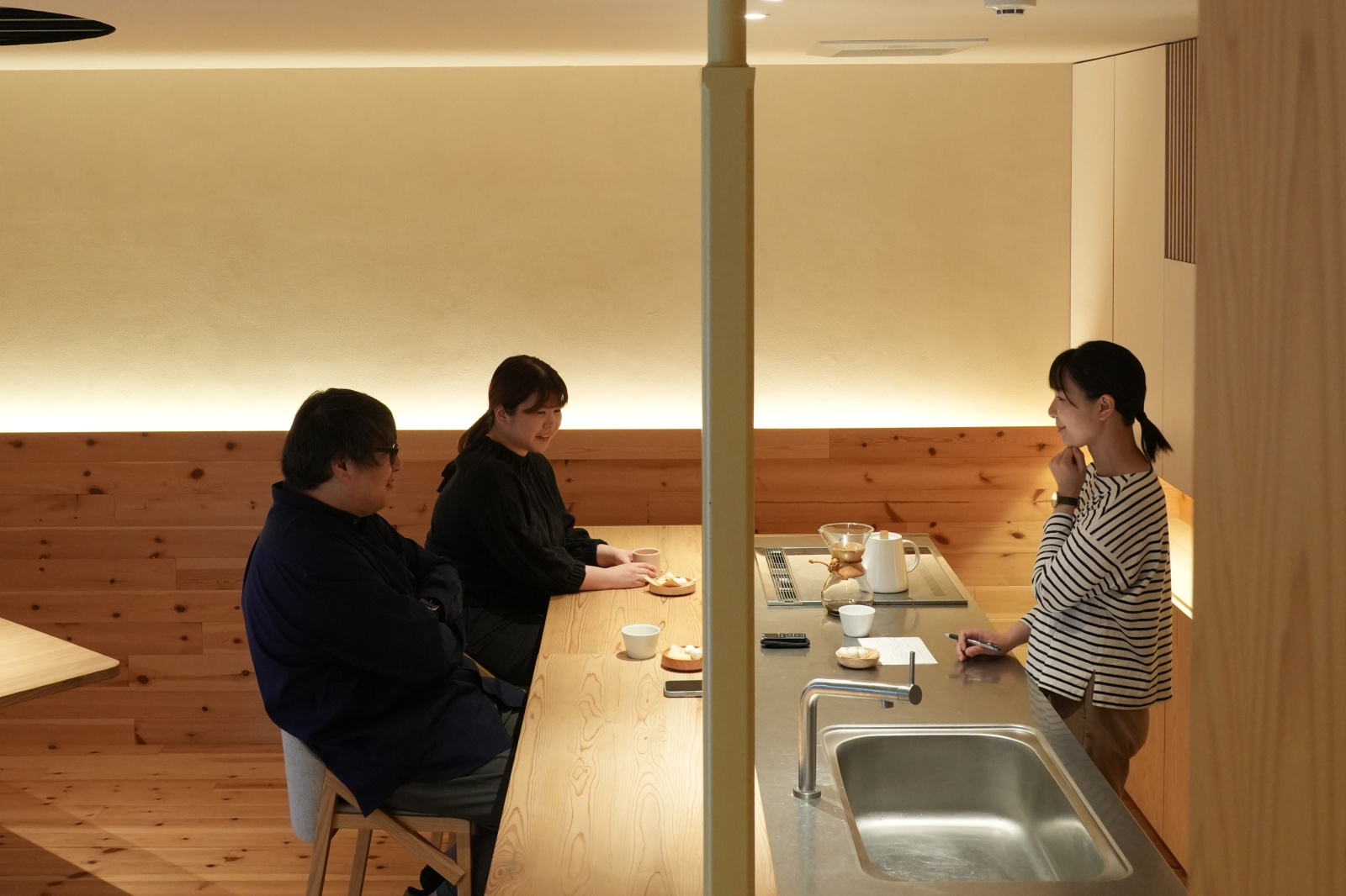実際に相羽建設で働いているさまざまな職種の社員に、家づくりやものづくりの仕事を語り合い、深掘りしてもらいました。相羽建設本社1階カウンターキッチンを定位置にリラックスした対話からは、働く人や場の雰囲気がストレートに伝わってきます。