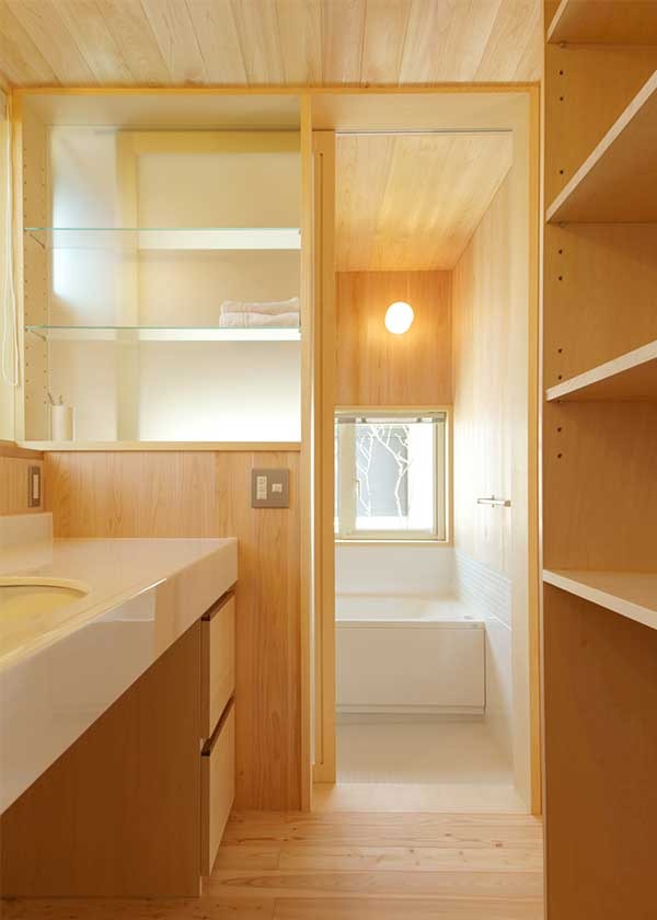 自然素材には体全体で感じる心地よさがあります。床には、やわらかく肌触りのよいパインやスギの無垢材を使用しています。浴室の壁材にはサワラ材を使用していることで、浴室いっぱいに木の香りが広がります。和紙や左官壁は、光が当たったときに柔らかな表情を見せてくれます。