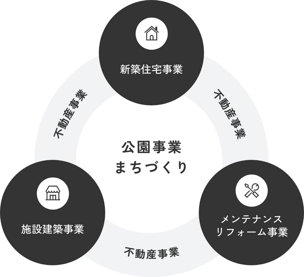 自然豊かで四季の変化をつぶさに感じられる多摩・武蔵野エリアで、帰ってきた時にほっとでき、日々のエネルギーをもらえるような場所を、私たちの不動産事業は育んでいきます。