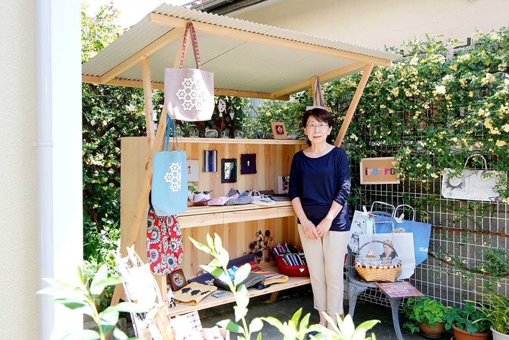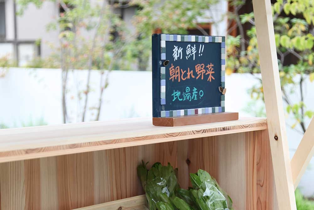 自家製野菜や手作り雑貨、本やお菓子などを並べて、軒先を小さなギャラリーに。道行く人とものを介したコミュニケーションを楽しむ道具。