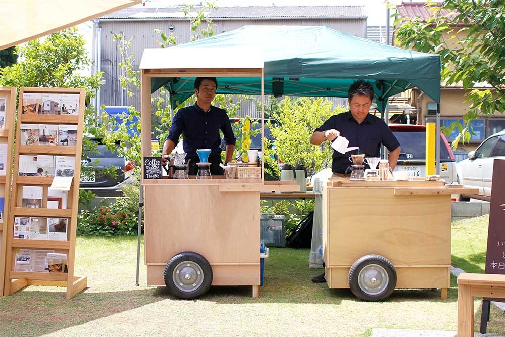 持ち運び可能のため、自宅の空きスペースだけでなく出張販売もできる「屋台」。飲食はもちろん雑貨などの販売にもご活用いただけます。マルシェの什器として揃えると、さりげなく統一感のある風景が生まれます。