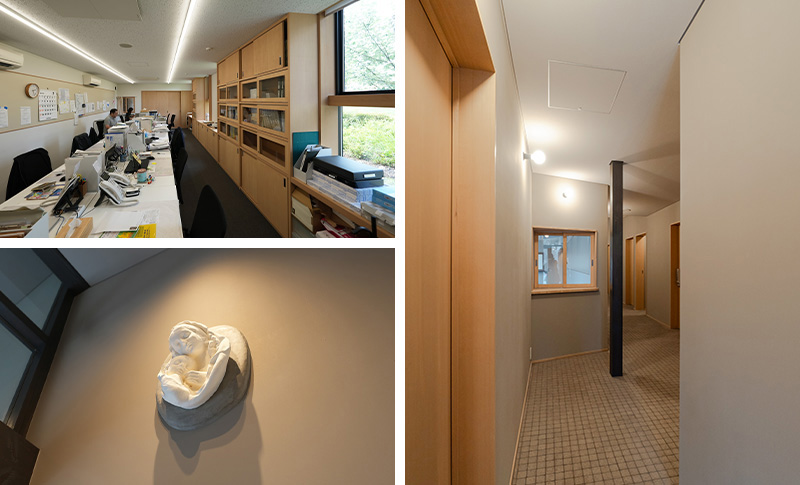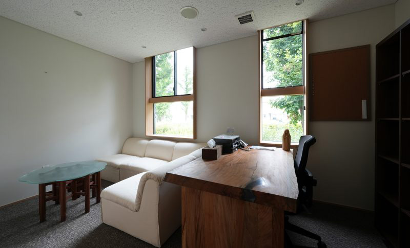 副園長の松浦さんは「管理棟は施設の中でも、子ども達の生活の場であり、心のケアの場として活用されている場所です。事務室やオフィスとしての機能も必要な反面、事務的になりすぎないでほしいという要望を取り入れてもらいました。子どもたちはトラブルがあると事務所に来ることが多いので、木造のあたたかみのある自然素材の質感は心の安定を支える要素になりますね」と語ります。