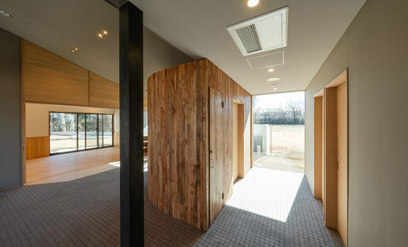 ただ、伐り倒して終わりということではなく建築の中に取り入れることで、子ども達にとって馴染み深い森の木々を、より身近に感じる仕掛けをしています。
