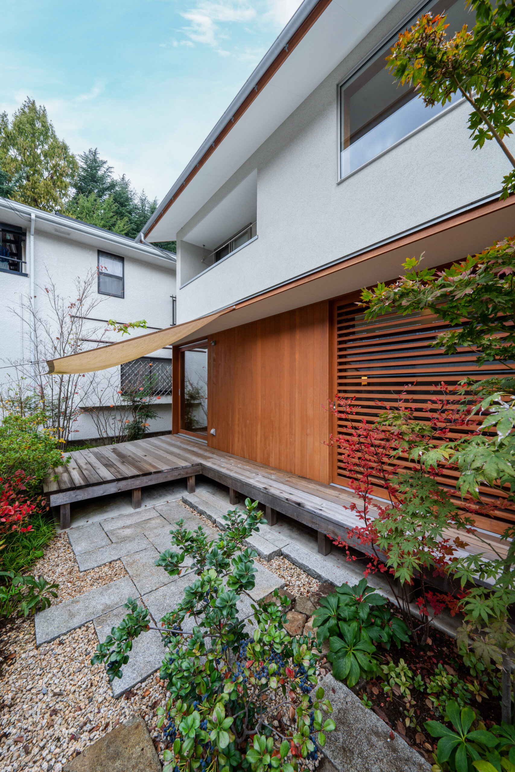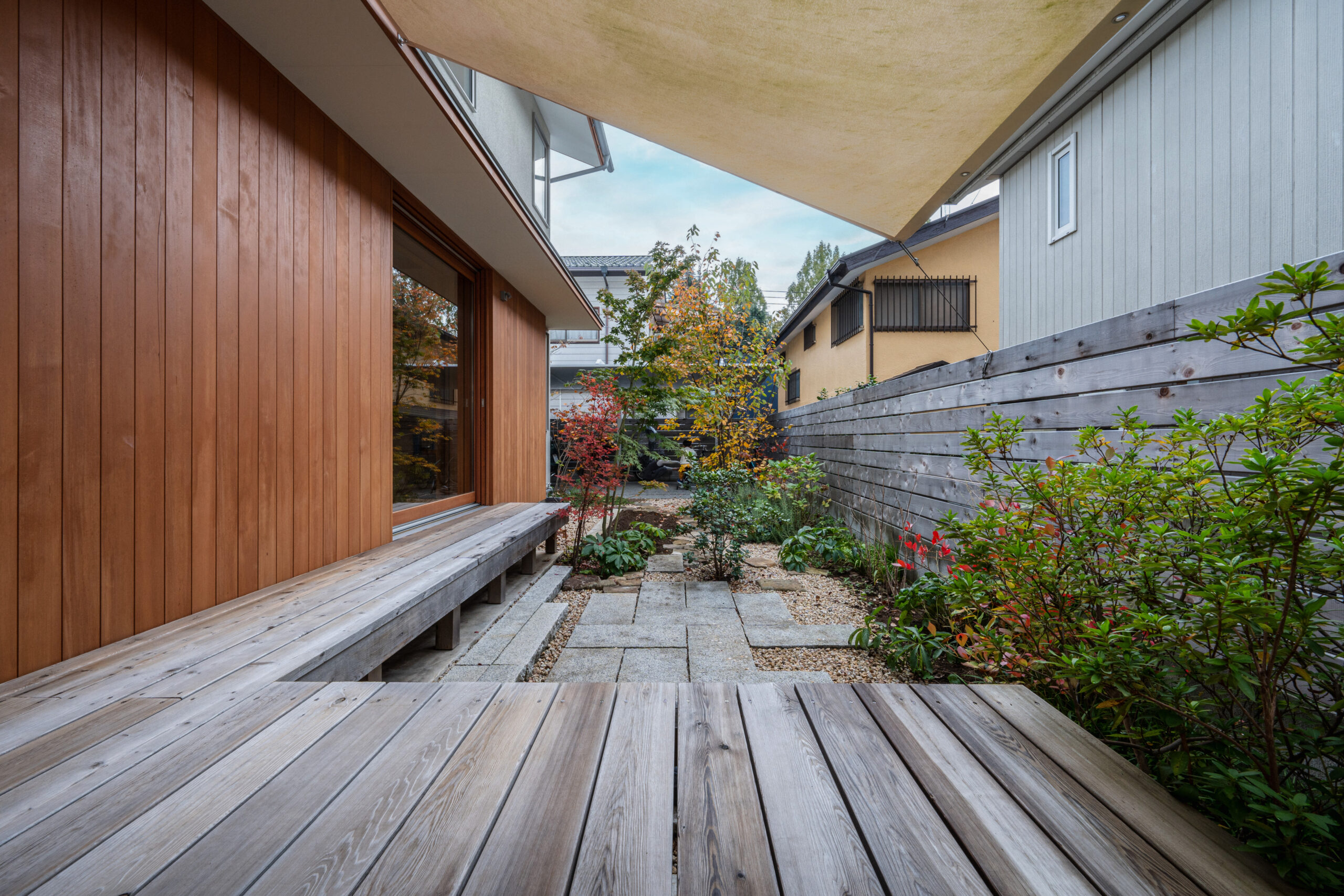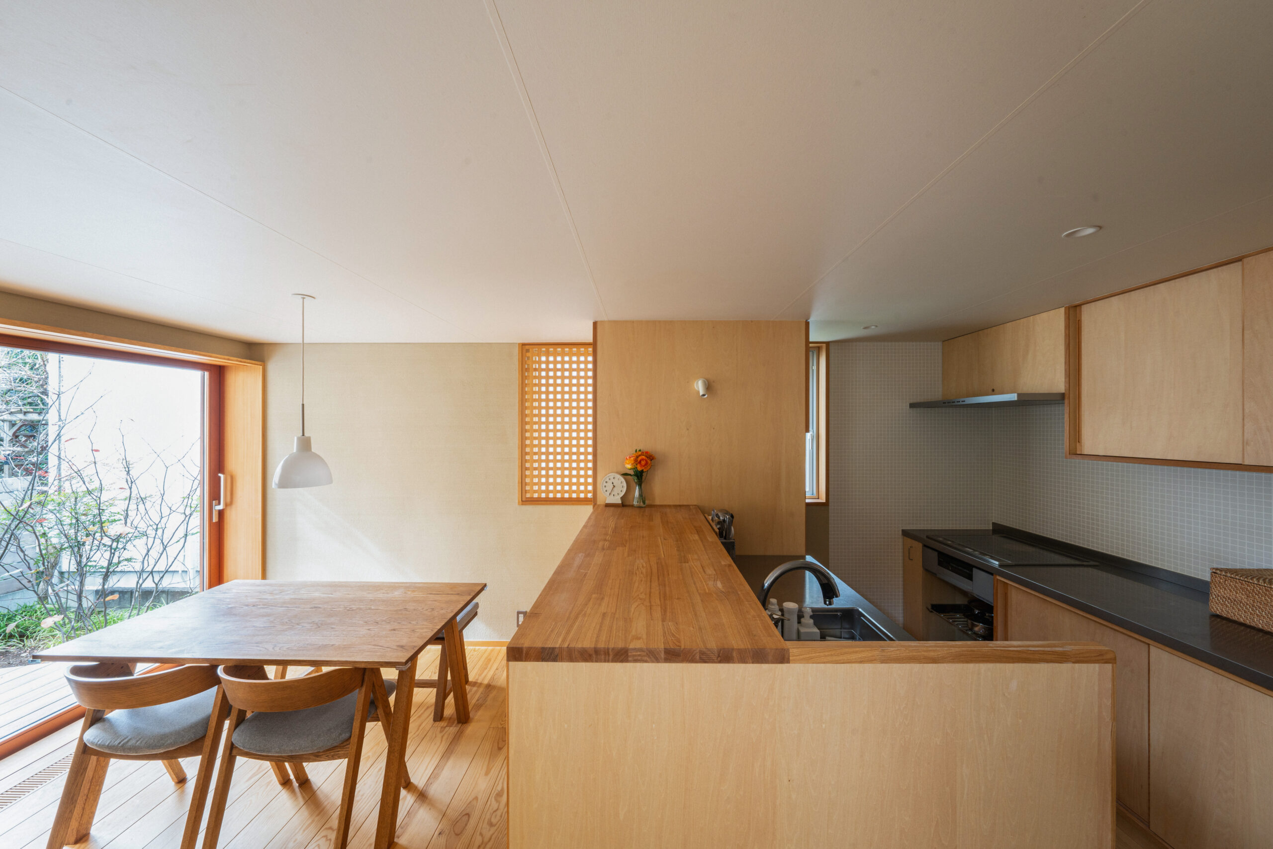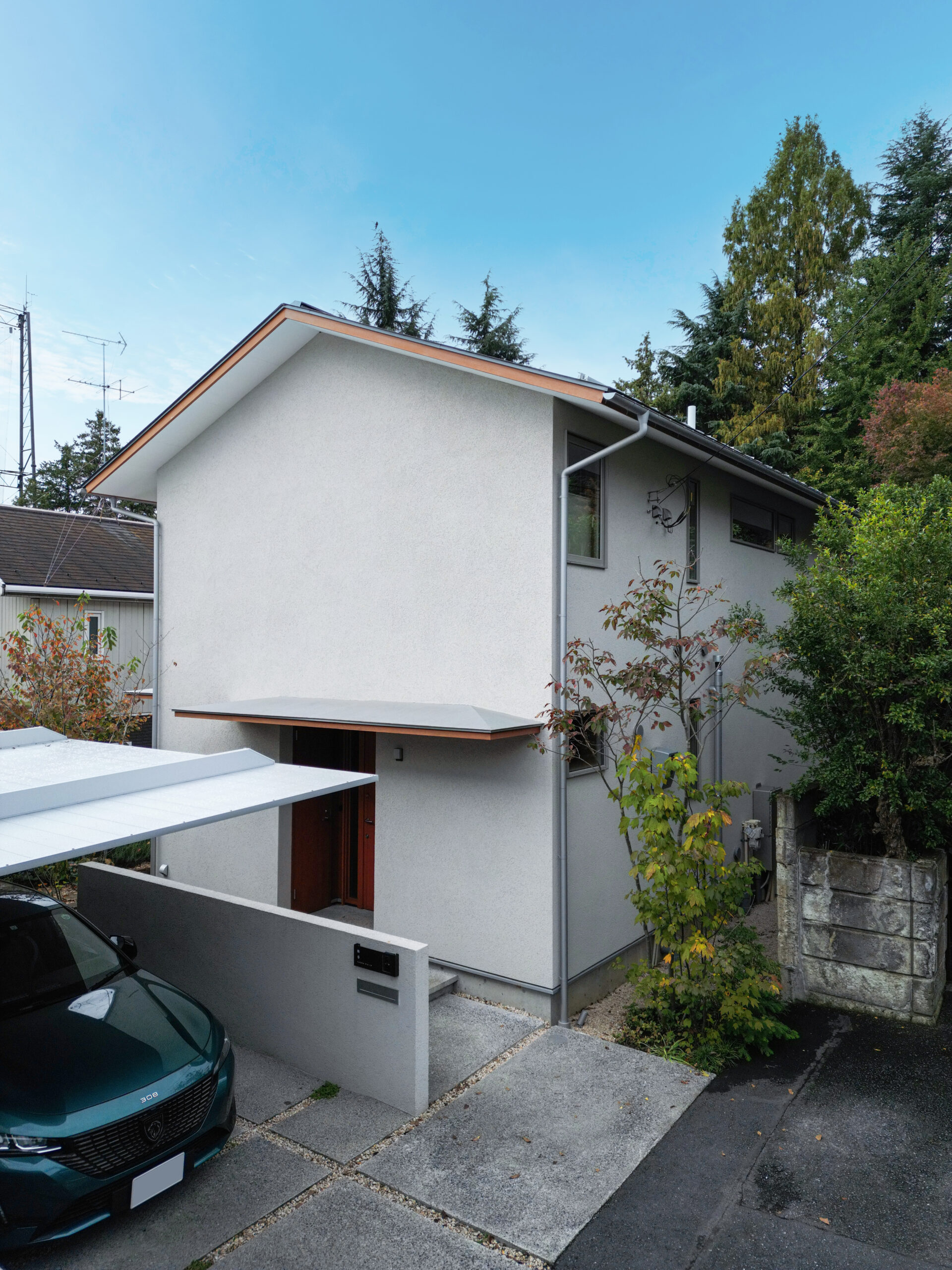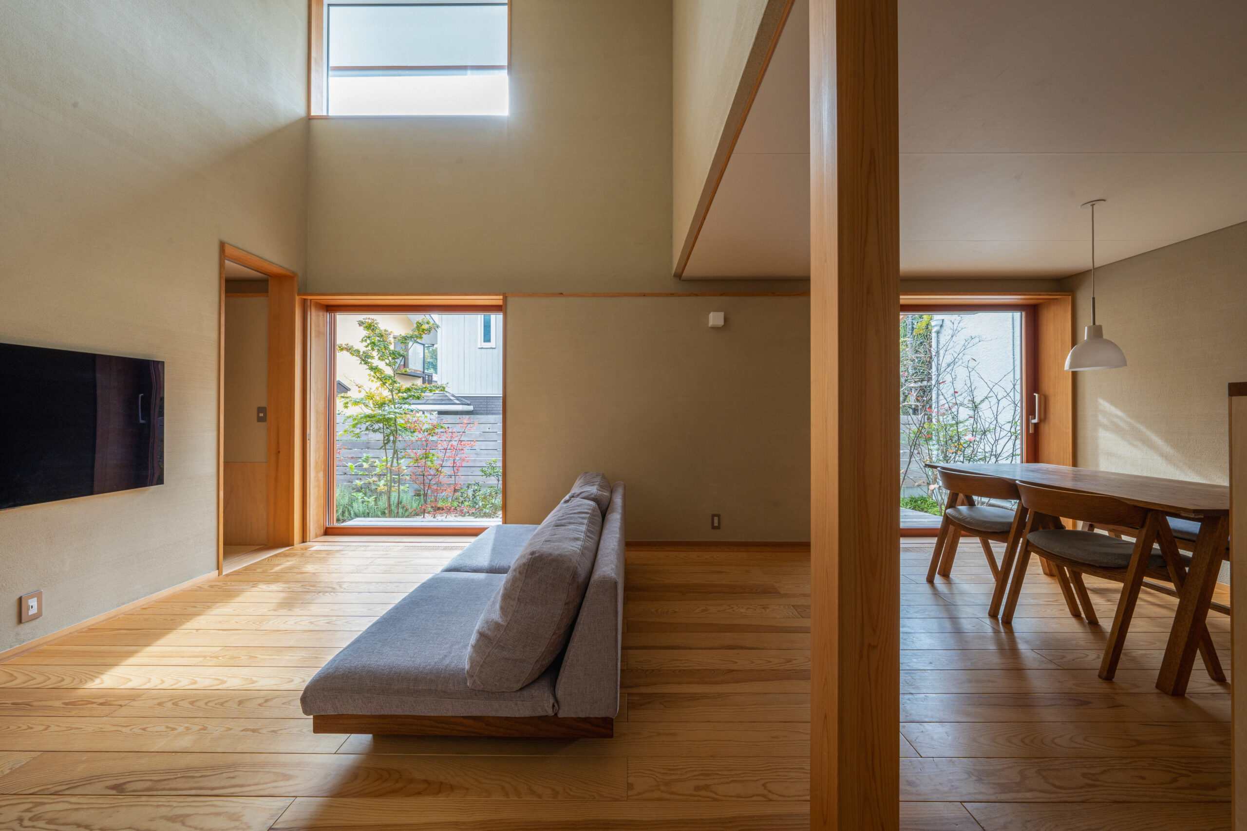 空と緑を切り取る窓が主役の家