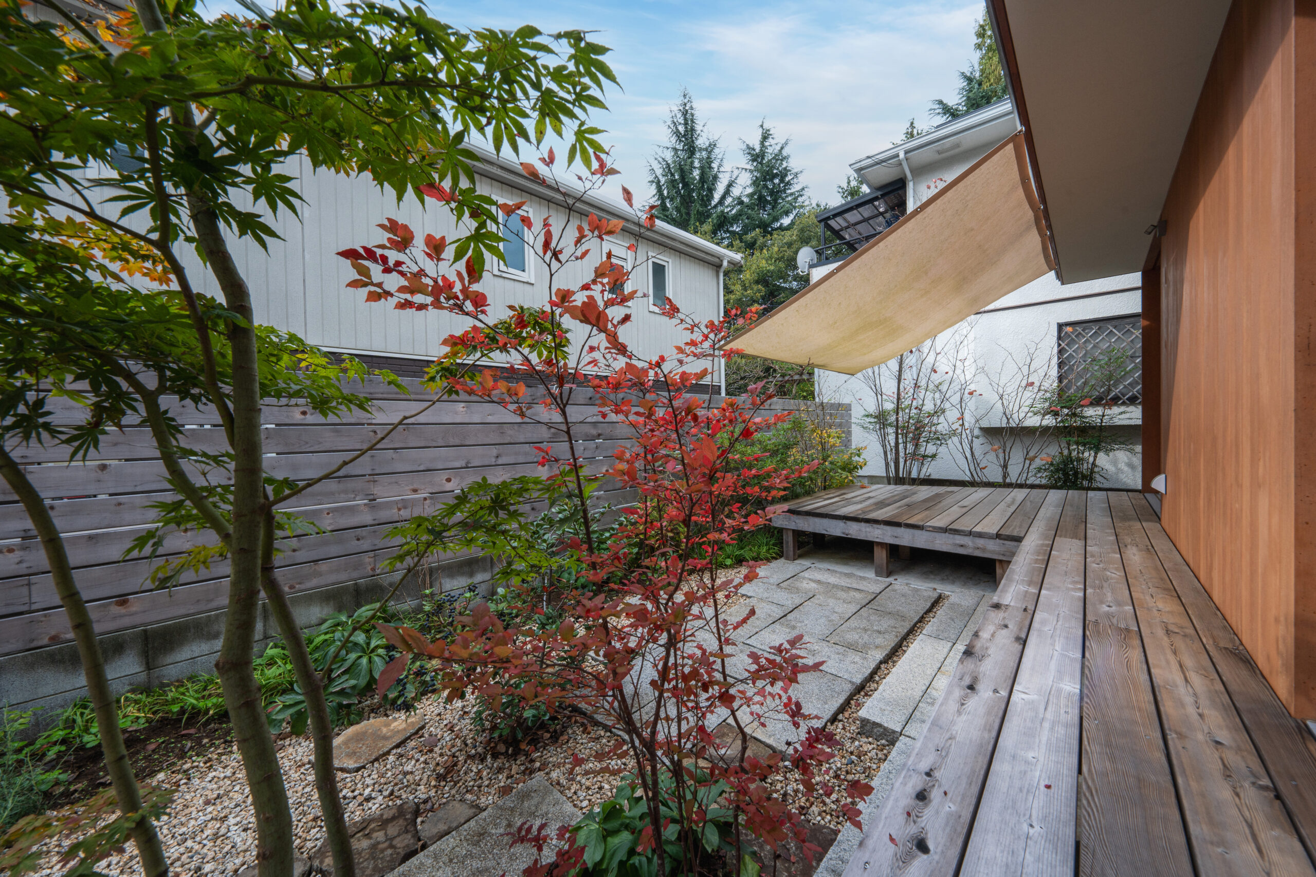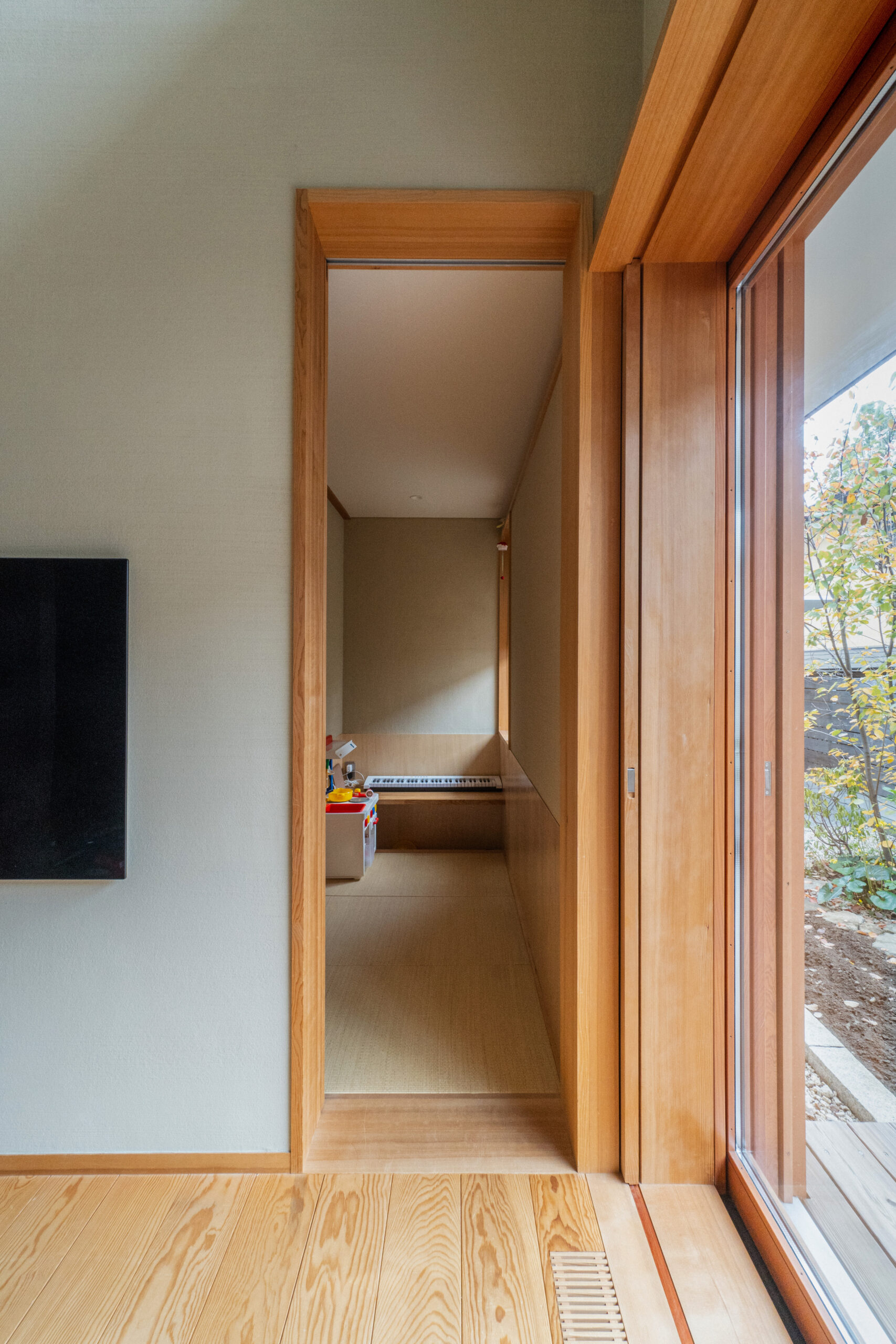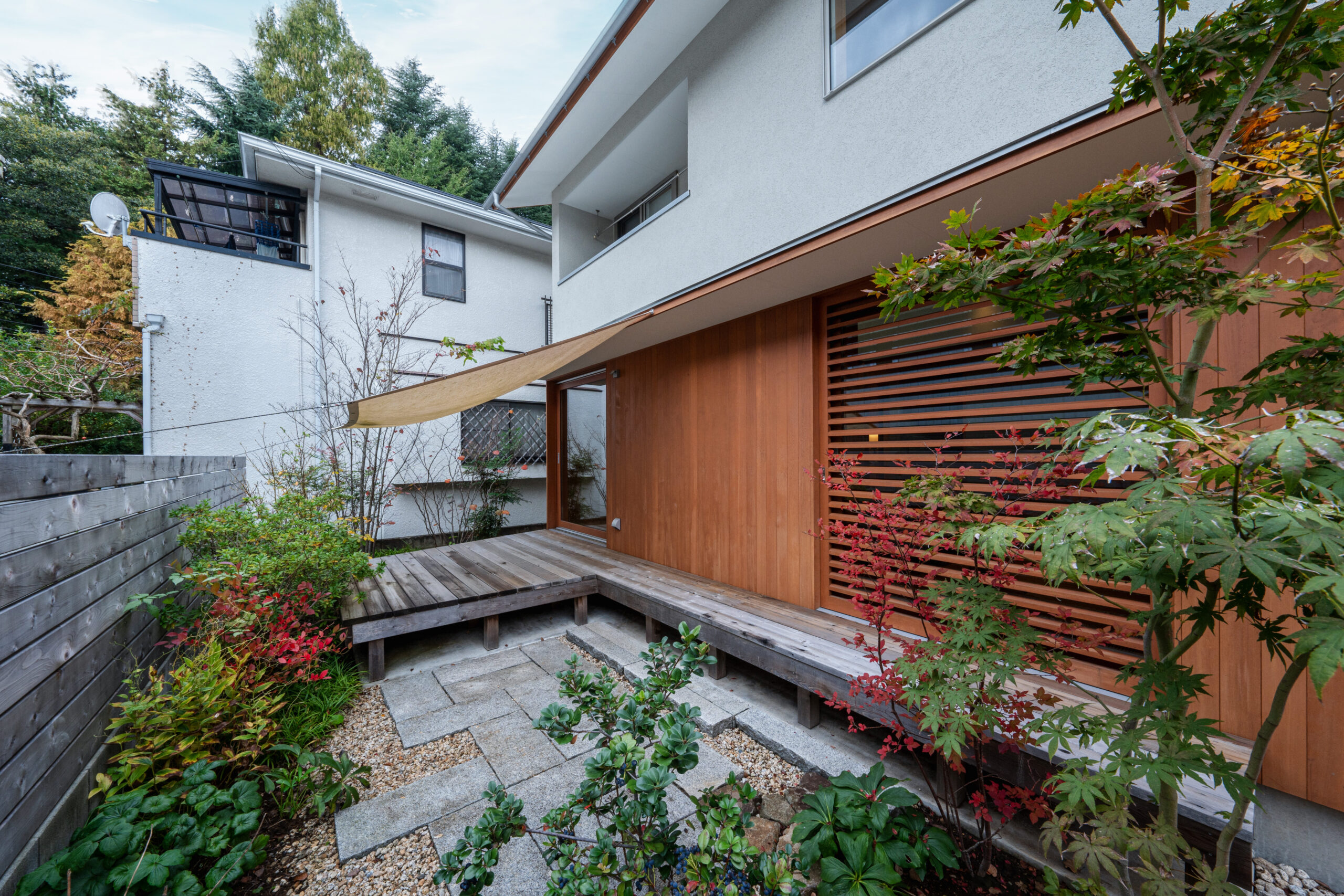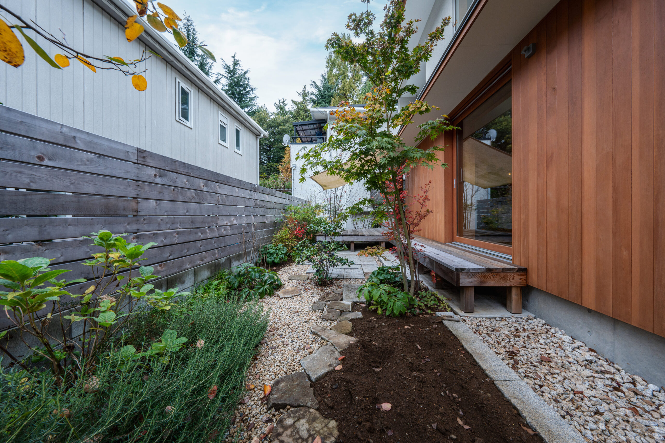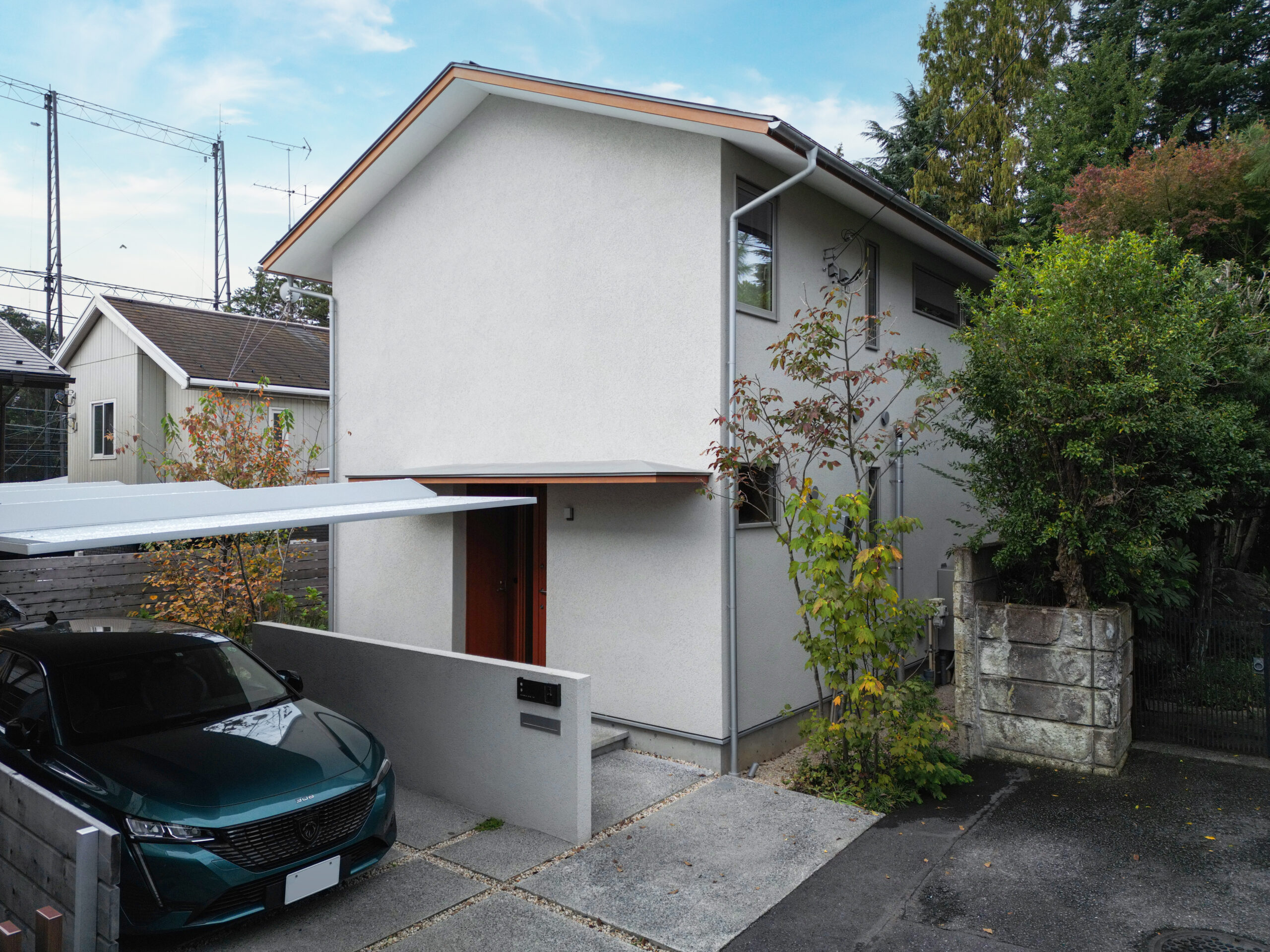 空と緑を切り取る窓が主役の家